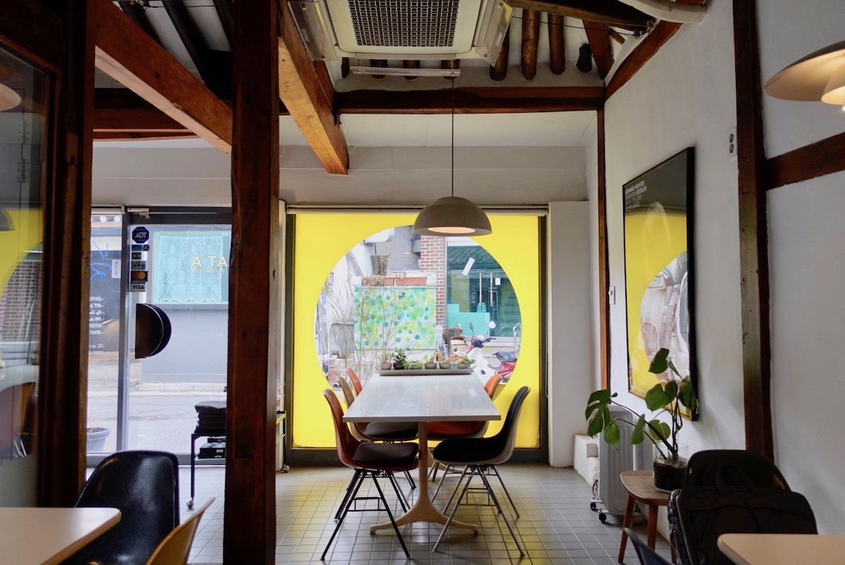 치즈 케이크와 차 한 잔을 마셨다. 소설의 막바지를 읽고 의미를 되짚었다. 그렇게 3시간 정도 머물렀다. 그동안 노란 창밖으로 대여섯 무리가 지나갔을까. 구름이 많고 바람이 세게 불던 날이라 실내로 해가 비치다 말다 했다.