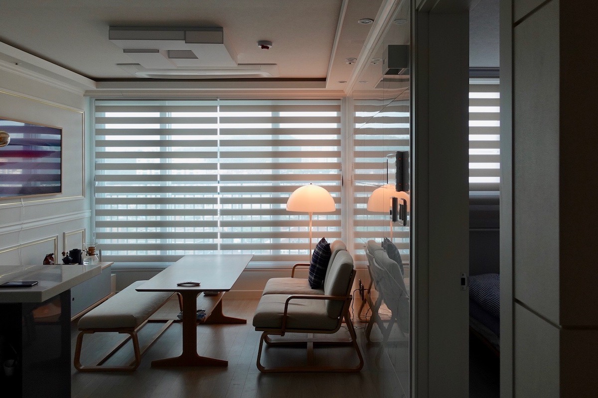 거실에는 (시국에 맞지 않게) 무인양품 리빙다이닝 테이블 세트가 있다. 일반 다이닝 테이블보다 낮게 설계되어서 리빙 소파와 함께 다이닝 테이블로 사용할 수 있는 기특한 녀석. (그래서 리빙 소파로 쓰기도, 다이닝 테이블로 쓰기도 애매한 건 사실.)