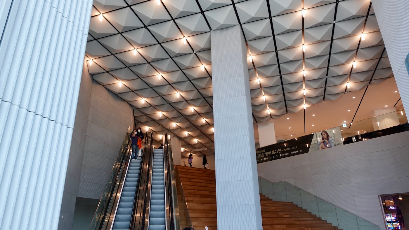 2014 베니스 비엔날레 건축전에서 황금사자상을 받은 한국관. 그리고 한국관을 진두지휘했던 조민석 건축가. 그는 대한민국 건축을 전 세계에 알린 자랑스러운 건축가다. 그 뒤 서울시청, 서울역 고가공원 등 한국 건축사에 길이 남을 대형 프로젝트 공모에서 번번이 우승을 놓쳤는데 나는 그게 무척 아쉬웠다. (조민석 건축가와 별 상관없는 포스팅이지만 자리를 빌려 아쉬웠던 마음을 남긴다.) 조민석 건축가는 렘 쿨하스가 이끄는 OMA 건축사무소에서 일했는데, 2014 베니스 비엔날레 건축전 심사위원장이 아마 렘 쿨하스였을 것이다. 그가 한국관의 수상을 발표하며 기쁘게 조민석 건축가를 찾았던 기억이 문득 스친다. 그런 그가 이끄는 건축사무소인 OMA가 갤러리아 백화점 광교점을 건축했다는 소식을 듣고 연휴를 맞아 광교를 찾았다.