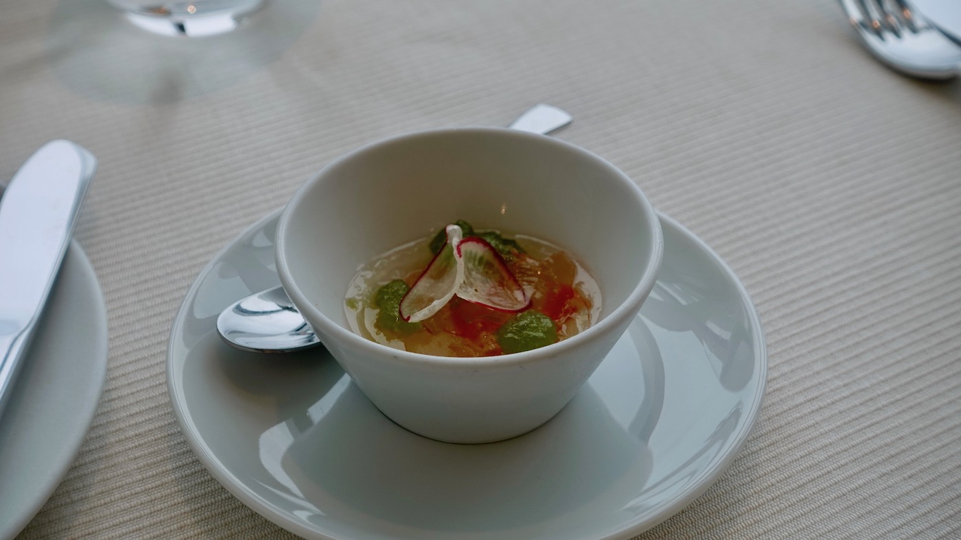 런치는 3가지 코스로 구성된다. 그 3가지 코스는 가격 순서대로 스테이 패션(1인당 약 8만원~), 펀(1인당 11만원~), 이모션(1인당 약 14만원~). 런치 메뉴는 디너에 정확히 절반 가격이다. 그중 가장 합리적인 가격으로 코스를 즐길 수 있는 패션으로 먹었다. 주문이 밀린 탓인지 메뉴 주문까지 꽤 오랜 시간이 걸렸으나 오랜만에 즐기는 코스 요리에 여행을 시작하는 흥까지 더해져 즐겁게 식사를 마쳤다.