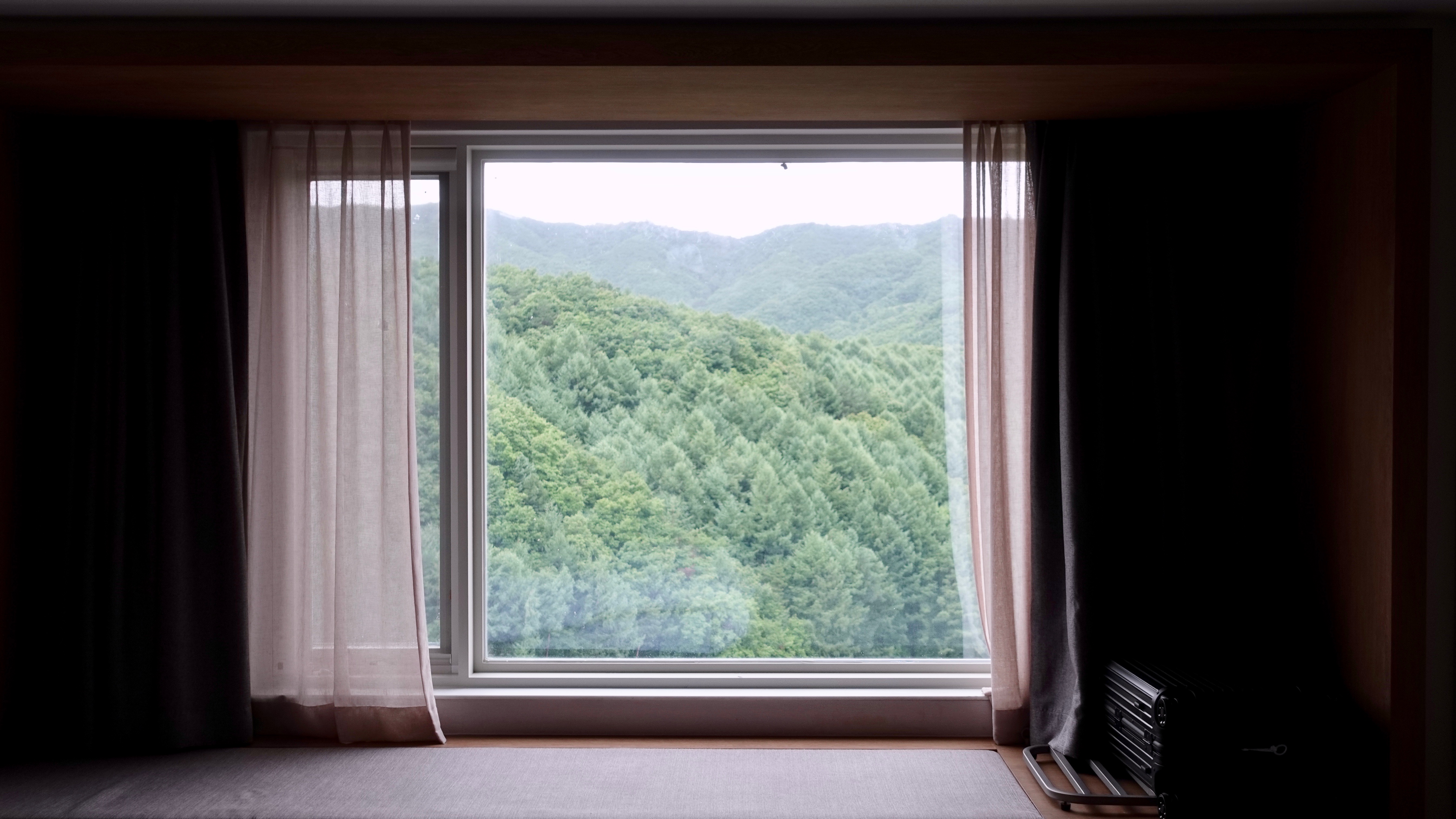 아침저녁으로 코끝이 찡한 걸 보니 올해 여름도 다 지났다. 올해 여름을 돌아보니 그리 덥지 않았다. 장마가 길었던 데다 태풍이 많이 지났던 탓인 것 같다. 지난 7월에 다녀온 강원도 여행도 비와 함께 했다. 휘닉스 평창 호텔에 2박을 묵었는데 머무는 동안 비가 오다 말다를 반복했다. 짧게 정선을 여행한 것 말고는 되도록 객실에서 쉬었다. 가장 작은 객실임에도 불구하고 창이 넓고 창밖으로 보이는 산이 울창해서 답답하지 않았다. 강원도의 울창한 산을 감상하고 싶다면 이곳으로.