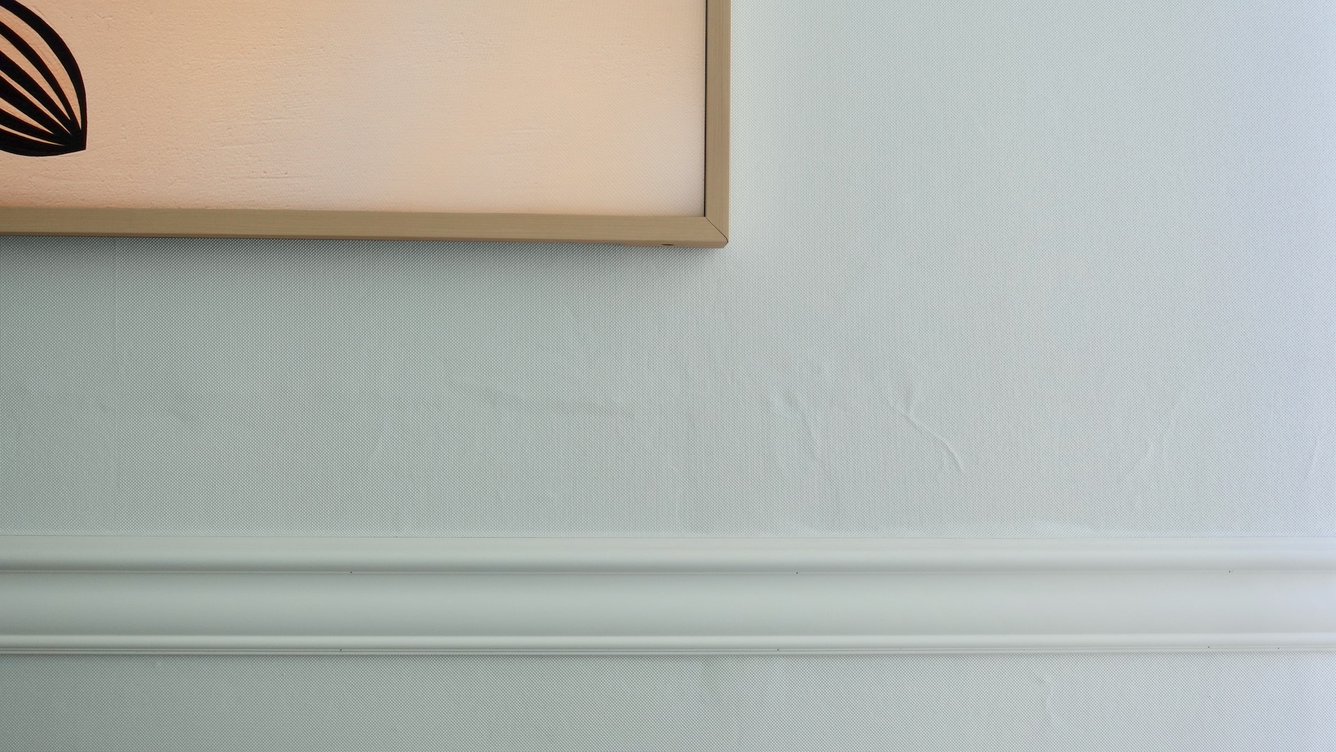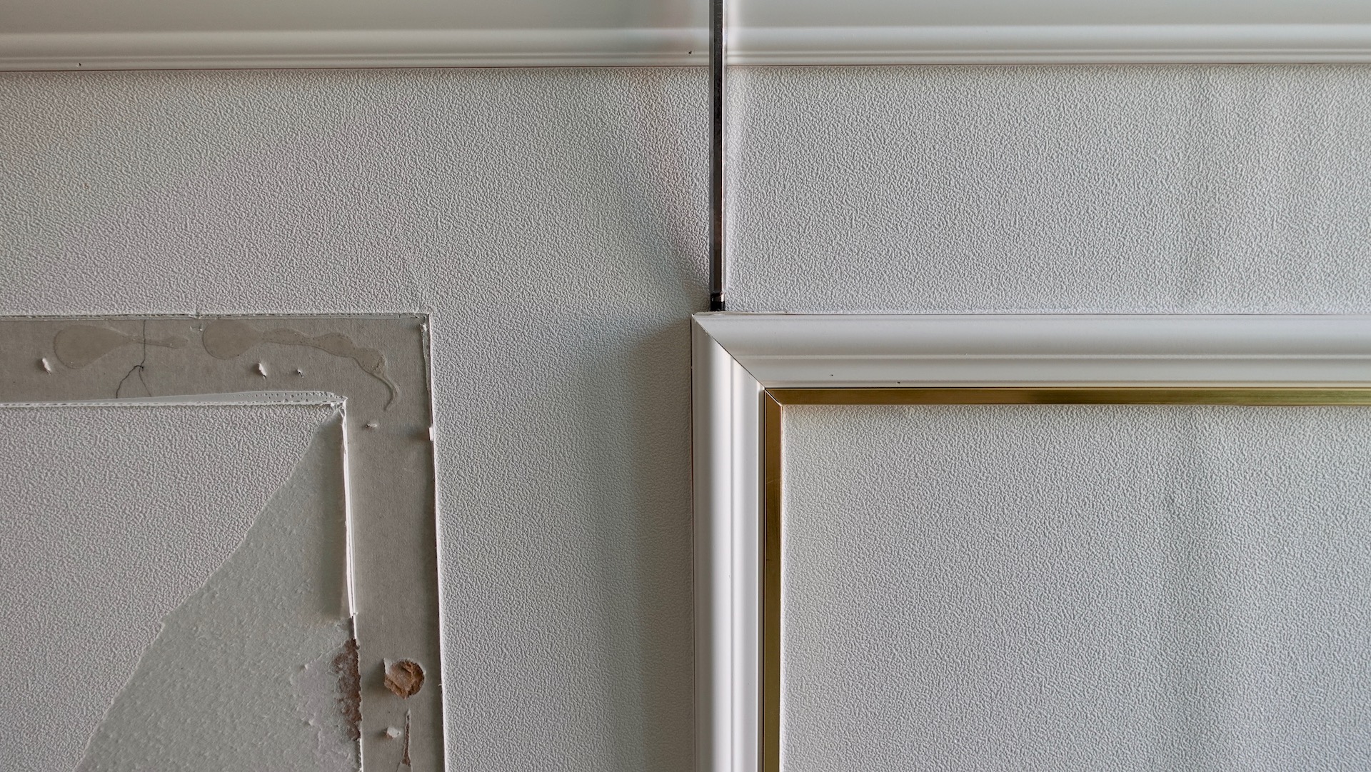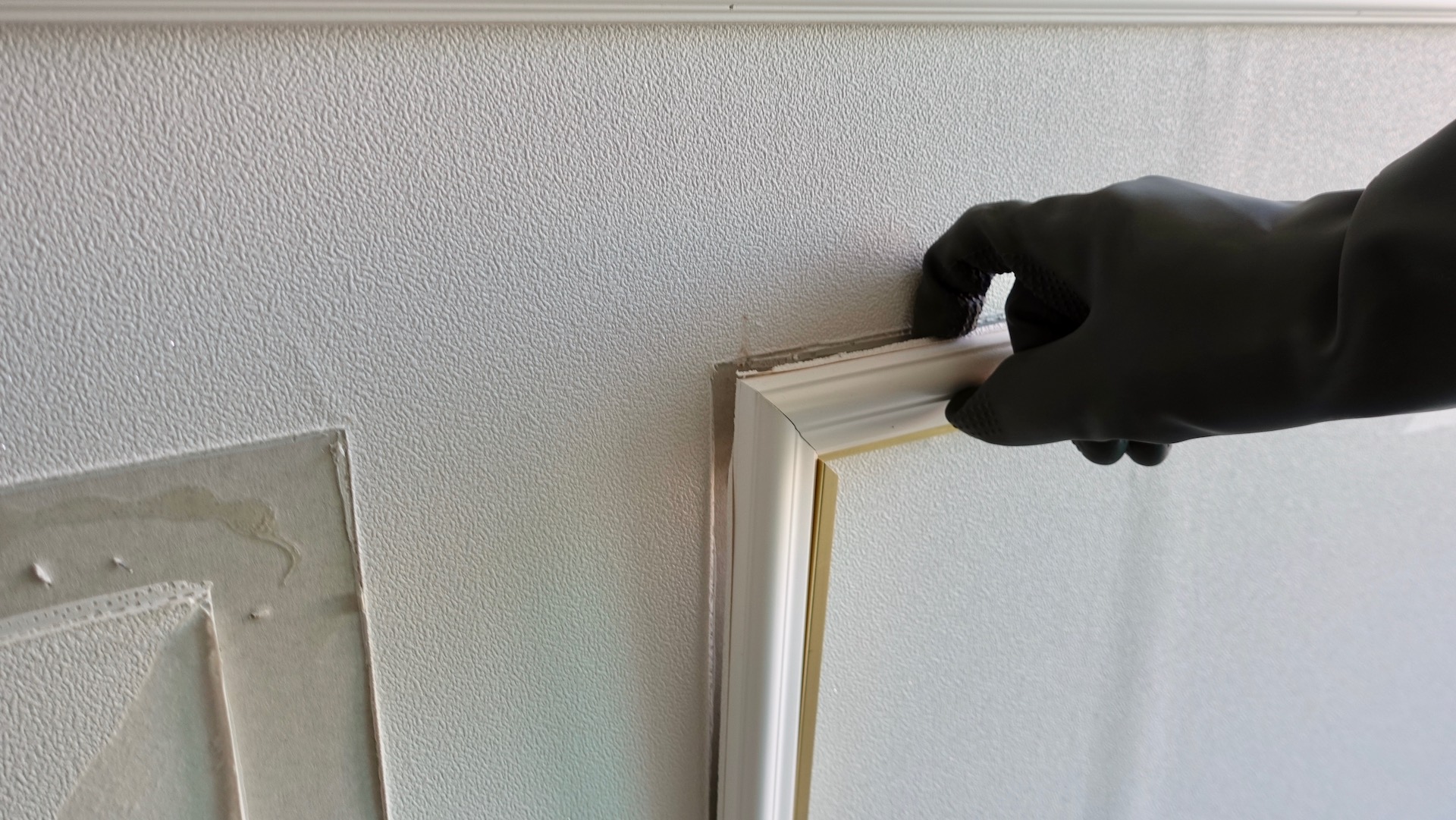 테스트로 왼쪽 하단 몰딩을 떼어 낸 벽의 모습.