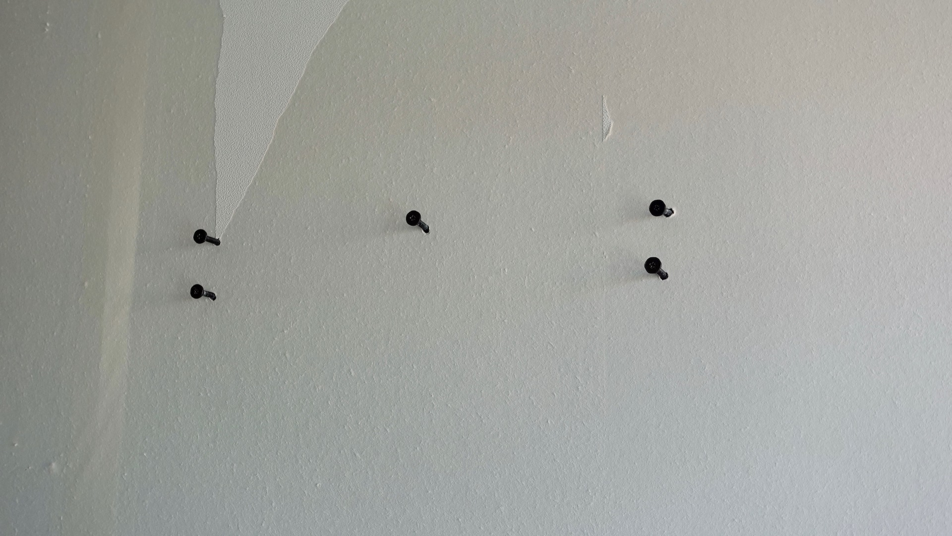 도배 후 같은 위치에 벽걸이 TV를 재설치 할 예정이라면, 위치를 확인하기 위해 나사를 꽂아두고 도배를 해야 한다.