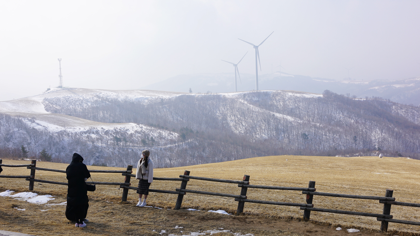 평창 대관령 삼양목장. 설경을 기대했는데 방문 이틀전 비가 내려 있던 눈마저 다 녹았다고 한다.