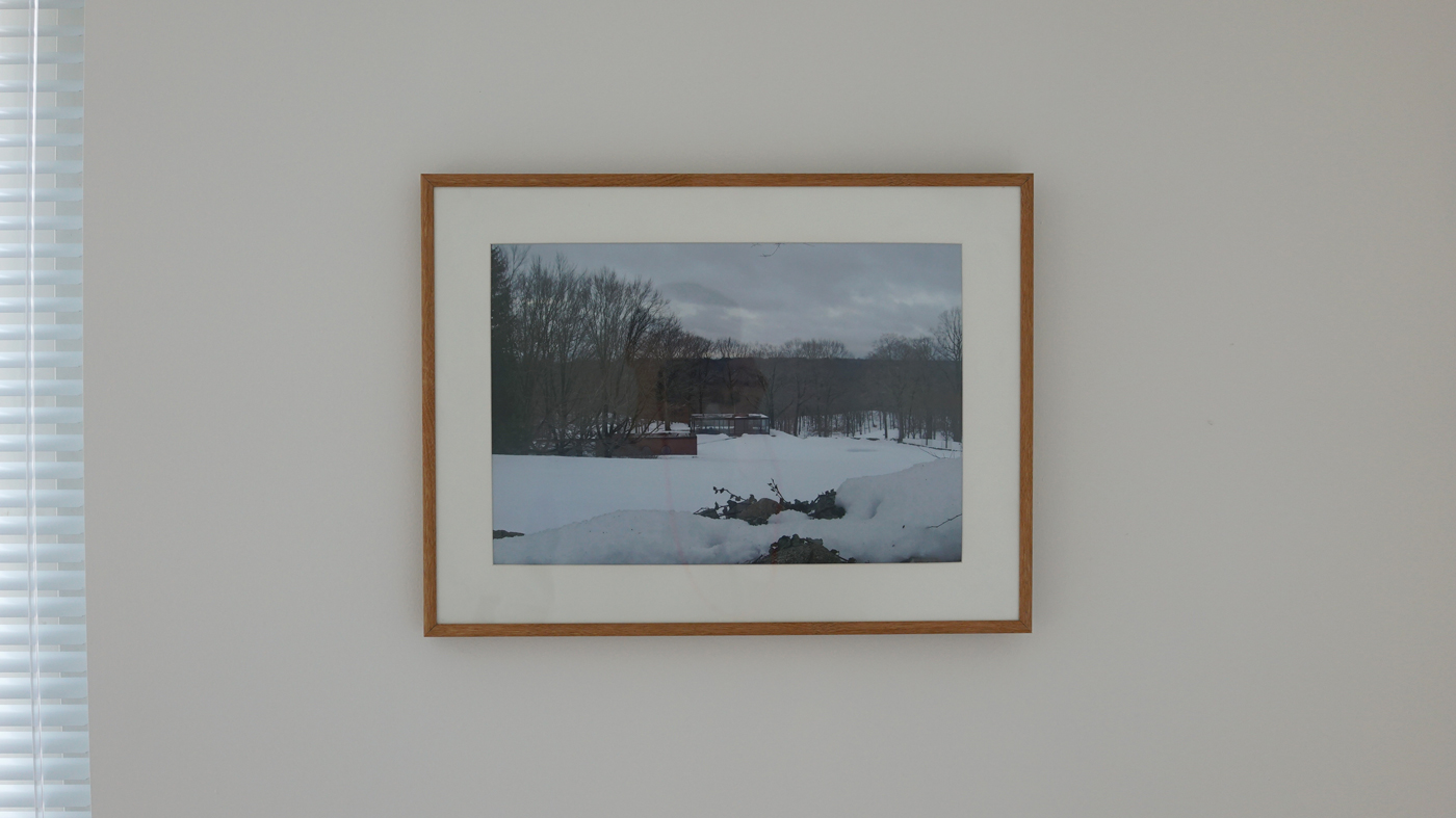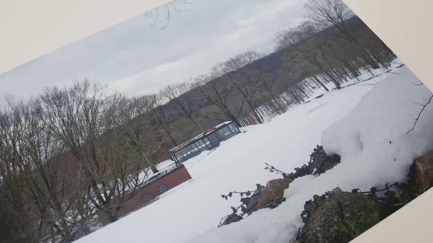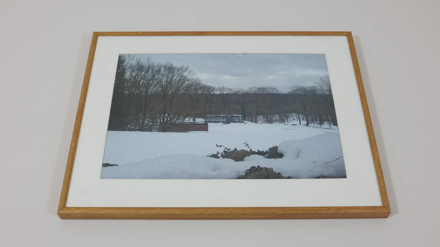 그날이 금요일이나 어차피 주말배송이 안 되어서, 결제를 차주로 미루었다. 그 '예쁜 사진'은 지난 호시노야 교토에 머물었던 미즈노네 객실을 문 밖에서 찍은 사진이었다. 가 사진을 보면 여행지에서 객실에 들어설 때의 설렘과 오모테나시가 떠올랐다. 주말을 지나며 다른 사진을 뽑길 원했다. 바로 대학교 1학년 겨울방학 때 무모하리만큼 용감하게 한 달간 여행했던 미국 동부에서 찍었던 필립 존슨의 글라스하우스 사진이었다. 이 글라스하우스 사진은 호시노야 교토의 사진보다 모든 면에서 못했다.