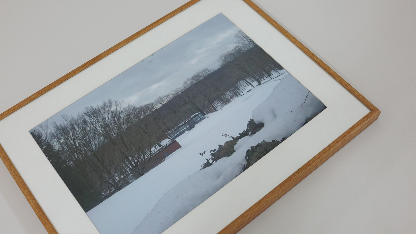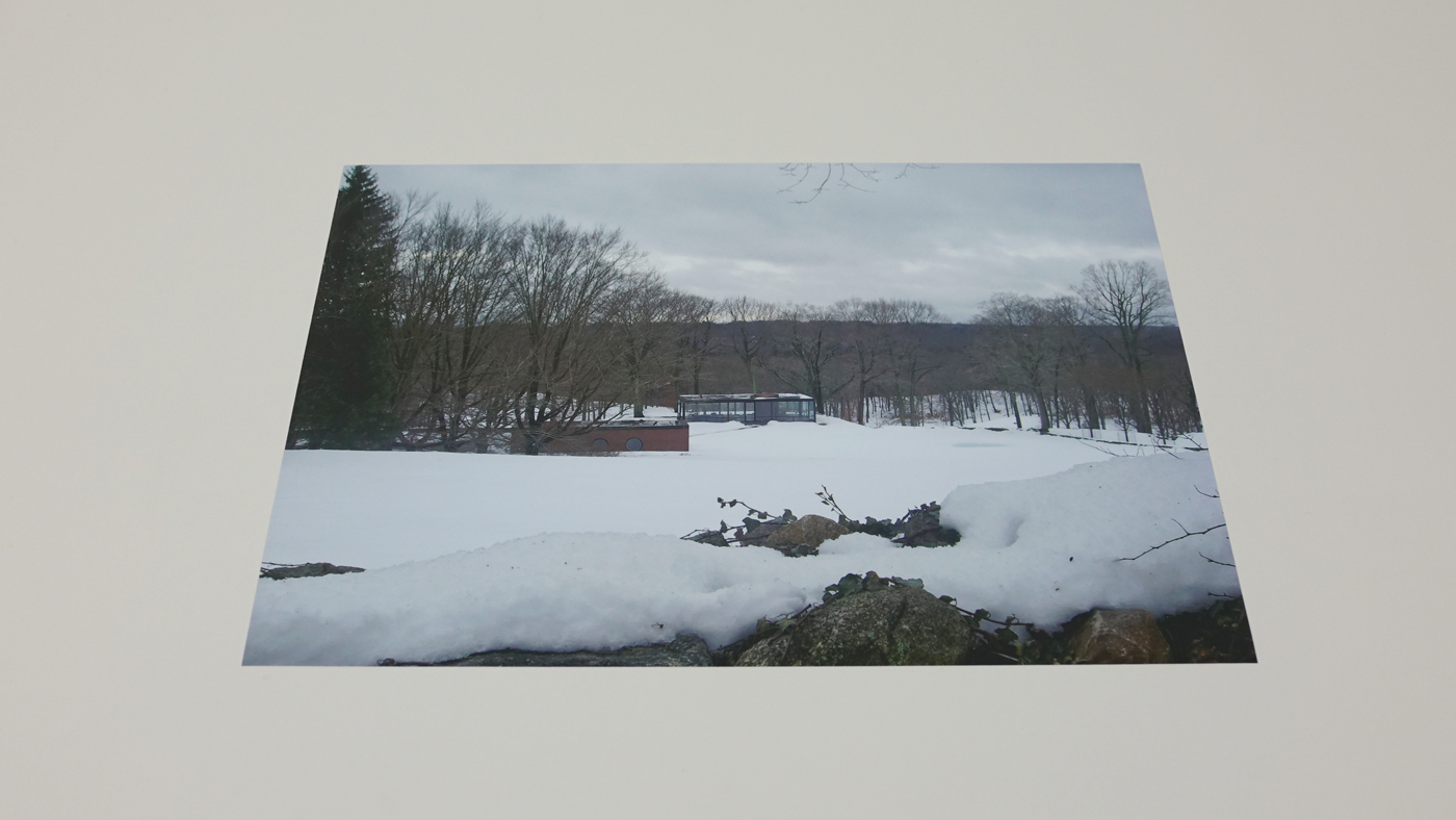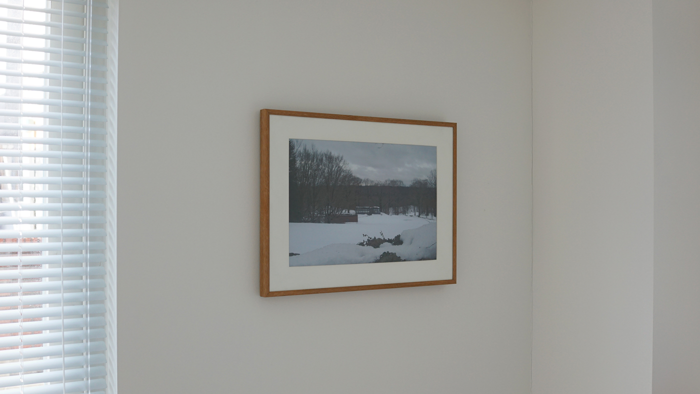 그날이 금요일이나 어차피 주말배송이 안 되어서, 결제를 차주로 미루었다. 그 '예쁜 사진'은 지난 호시노야 교토에 머물었던 미즈노네 객실을 문 밖에서 찍은 사진이었다. 가 사진을 보면 여행지에서 객실에 들어설 때의 설렘과 오모테나시가 떠올랐다. 주말을 지나며 다른 사진을 뽑길 원했다. 바로 대학교 1학년 겨울방학 때 무모하리만큼 용감하게 한 달간 여행했던 미국 동부에서 찍었던 필립 존슨의 글라스하우스 사진이었다. 이 글라스하우스 사진은 호시노야 교토의 사진보다 모든 면에서 못했다.