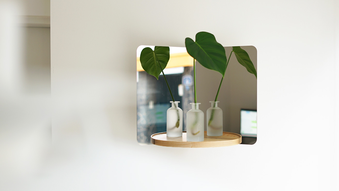 루밍, 이노메싸, 더콘란샵, 네스트 등 국내외 인테리어 편집샵을 둘러 보아도 마음에 드는 제품이 없어 무난하게 무인양품 벽걸이 거울을 살까, 고민하던 중 아르텍의 124도 거울을 발견했다. 124도 거울은 2017년 노르웨이 디자이너 다니엘 리바겐 Daniel Rybakken 이 아르텍 artek 과 협업해 디자인한 제품인데, 거울이라 하기 보단 하나의 오브제에 가깝다.