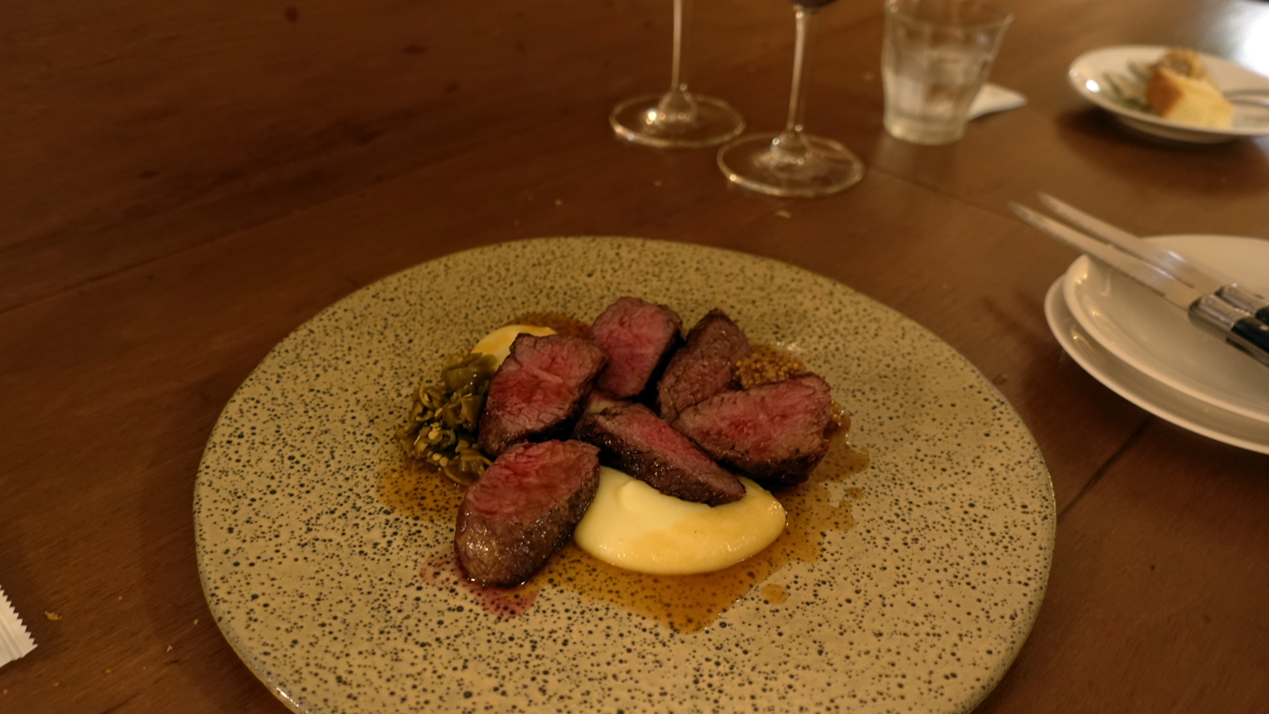 숙소에서 씻고 쉬다가 <르규옹> 이라는 와인 집을 방문했다. 찾아보고 간 건 아니고 숙소 바로 앞이라 갔다.메뉴 이름을 까먹었다. 뇨끼와 초당옥수수였나? 맛있었다.메인메뉴로 고기를 주문했다. 너무 오래되서 기억이 나질 않는데 과거에 찍은 메뉴판 사진에 메뉴 이름이 보이질 않는다. 즉석에서 고기가 있는지 물어보고 주문을 했었나? 아무튼 이 또한 맛있었다. 주문한 메뉴 하나하나가 다 맛있어서 다음에 못 먹어본 메뉴도 먹어보고 싶다.