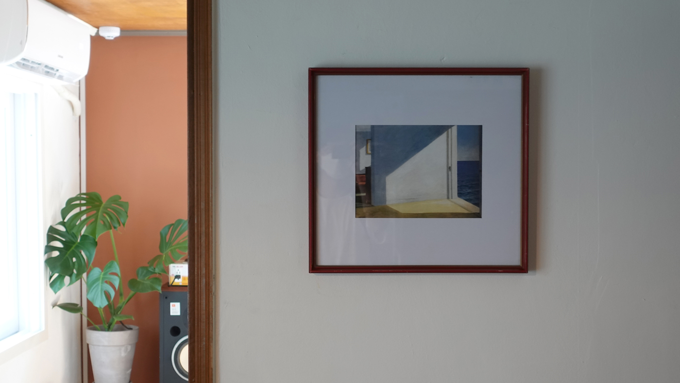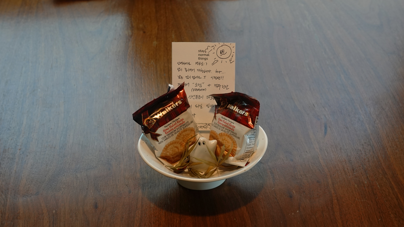 스테이 노멀띵스 찾아가는 길. 연남동 중심 상권에서 꽤나 벗어나, 대중 교통을 이용하기에 불편했으나 초창기 연남동이 또오르는 정감 가는 골목길이다.스테이 노멀띵스는 다가구 주택 2층 구석에 있다. 오래된 주택인데다가 한여름이었어서 복도에 날벌레가 많았다.스테이 노멀띵스 현관. 산업디자인을 전공한 호스트인데 내부가 기대됐다.내부에 들어섰을 때 첫 장면. 에어비앤비 예약 앱에서 본 그대로의 룸 컨디션이었다. 천고를 트고 벽을 콜라주하듯 나누어 거울로 마감한 것에 디자인 전공자의 내공이 느껴졌다. (뭔가 잘 맞을 것 같아 친해지고 싶다.)들어서자 마자 가장 눈이 간 건 에드워드 호퍼의 <바닷가의 방> 액자가 눈에 띄었다.그리고 베드룸에 들어서자 마자 큰 존재감을 내뿜는 JBL 스피커 시스템.초록색 브라운 탁상시계. 투명한 하드 케이스를 입은 초창기 아이팟. 아이팟에는 호스트가 담은 곡들이 담겨 있었는데 하나 같이 좋았다.베드룸. 침구는 편안했다. 저기 액자는 작가의 서명이 있는 걸로 보아 호스트의 소장품인 듯하다. 밤에 길거리 사인불빛과 가로등빛이 실내로 들어왔는데 암막 커튼이 없어 좀 곤란했다.베드룸을 페인트 칠한 적갈색은 창문 너머로 보이는 적벽돌과 적색 기왓지붕과 톤을 같이 한다.창 밖으로 줄 선 식당이 보인다. 찾아 보니 "소점" 이라는 일식당으로 후기가 좋은 오코노미야키와 타코야키 맛집이라고 한다.침실 문에서 본 다이닝키친. 무채색 일색인 집에서 살다 포인트 컬러가 잘 배치된 숙소를 보니 무더운 날씨에도 괜한 활력이 났다.배가 고팠으나 일단 웰컴드링크. 일리 커피를 한 잔 내려 마셨다.호스트 님께서 남겨 주신 짧은 편지와 다과에 감동을 받았다. 아까 창 밖으로 본 소점 식당에서 시원한 맥주 한 잔 하길 추천하셨다. 다만 약속이 있어서 소점 방문은 다음을 기약한다.다시 먹고 싶은 훌륭한 디저트. 언젠가 저 과자 구해서 먹어보고 싶다.오후에 약속이 있어서 연남동 중심상권에 걸어서 다녀 왔다. 걷기에 힘든 날씨였는데 교통이 썩 잘 되어 있지 않은데다 택시도 잡히질 않아 20분을 걸었다. 어쨌든 약속을 마치고 다시 숙소로 돌아와 저녁이 되었다.