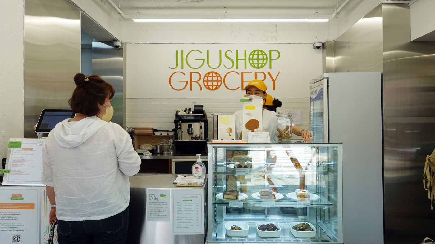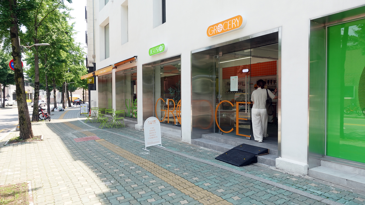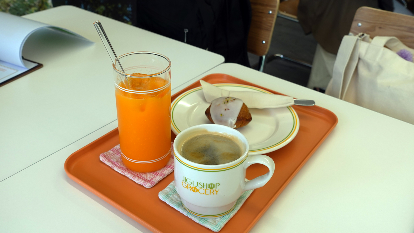 그리고 동네를 그냥 벗어나기 아쉬워 카페를 찾다가 발견한 <지구샵 그로서리>친환경 무엇무엇들을 팔고 있었고디저트와 음료도 비건식으로 판매하고 있었다.신선한 주스와 커피 그리고 간단한 디저트를 먹었다. 여기 팬케이크를 다음에 브런치로 먹어보고 싶다. 다 적고 보니 재방문하고 싶은 식당 투성이다.