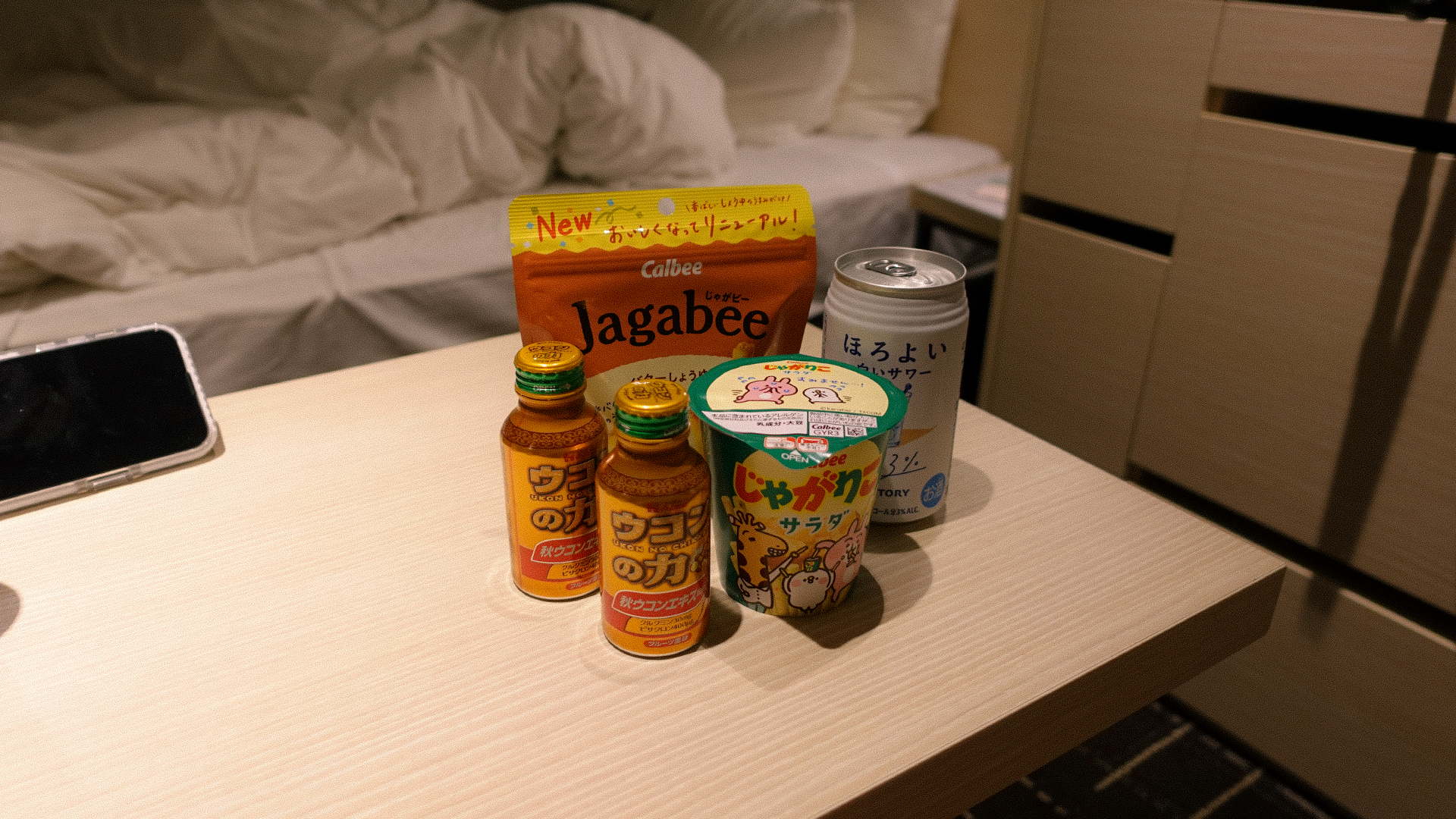 호텔에 체크인하고 바로 옆 건물 1층 라멘집에서 허기를 때운 뒤 편의점에 들러 이것저것 과자를 사왔다. 라멘집에서 맥주를 마셔서 숙취해소제도 샀다. 효과가 좋더라.