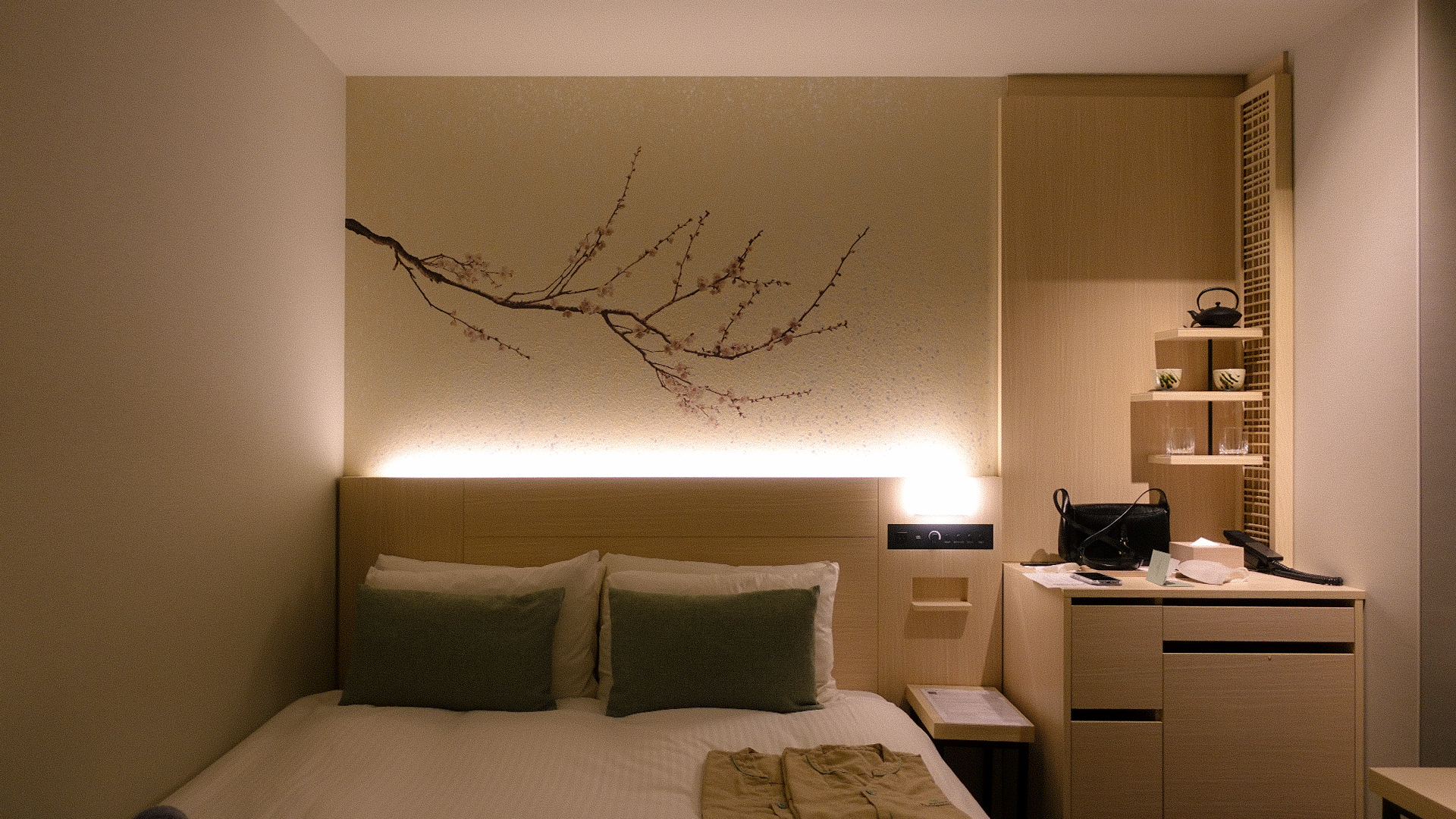 비즈니스 호텔이라 객실은 특별히 소개할 것이 없지만, 목욕을 사랑하는 일본문화 덕분에 작은 객실 임에도 큰 욕조가 딸려 있었던 점이 좋았다. 호텔 퍼실리티로 소개할 만한 것은 14층 로비 층에 있는 야외 정원이다. 이 또한 크진 않지만 뷰가 좋고 객실을 오가는 길에 그날 날씨를 확인하고 잠시 바람을 쐬기 좋았다. 서비스에서는 조식이 특별했다. 보통 호텔 조식은 컨티넨탈 뷔페로 나오는데 이곳은 카에가와 레스토랑에서 일본식 제철요리 상차림 메뉴로 제공됐다. 메뉴는 생선구이 정식, 도미챠즈케(차밥) 2가지 중에서 선택할 수 있다.