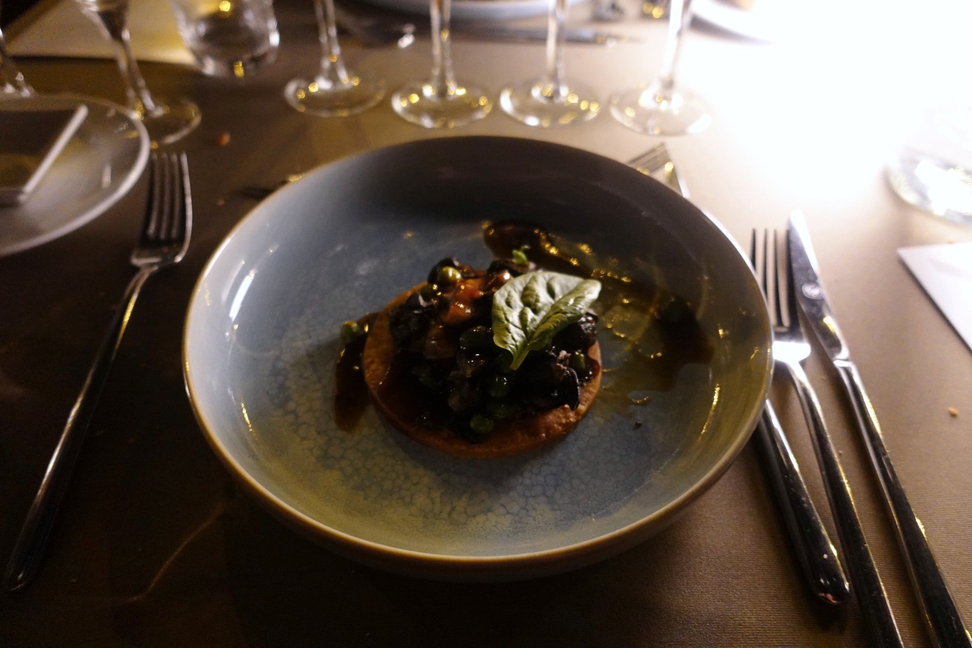 코스요리는 안내된 메뉴판에서 각자 선택할 수 있었다. 담당 서버의 친절한 메뉴 안내를 받아 나는 스타터로 달팽이 타르트를 아내는 연어요리를 선택했고 메인은 모두 농어요리를 골랐다. 메뉴에 메인 메뉴로 송아지 요리도 있었는데 하나씩 시켜서 나누어 먹을 걸 그랬다. 부족한 영어로 빠르게 대답해야 하는 어수선한 분위기라 생선요리로 통일해 주문해버렸다. 웰컴드링크로 샴페인이 나왔고 와인은 레드와인 한 병이 제공됐다. 생선요리를 먹어서인지 서버가 무료로 화이트 와인도 몇 잔 따라 주었다. 메인 이후에는 치즈요리와 디저트가 나왔다.