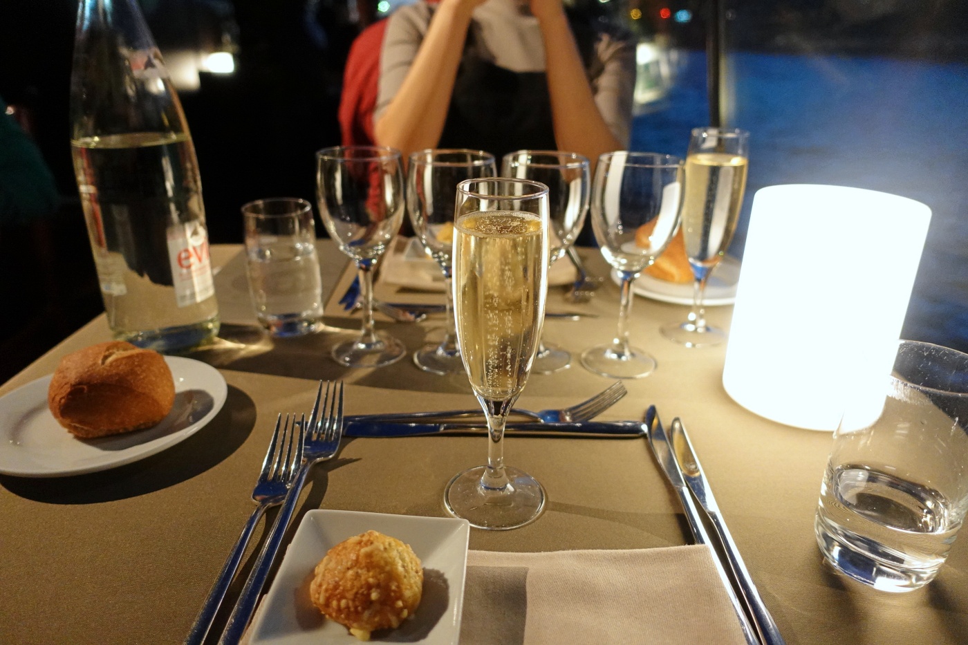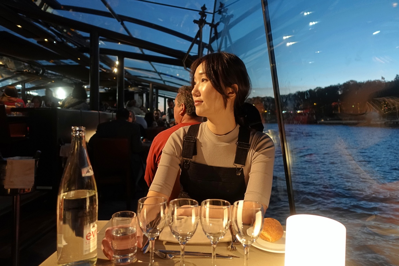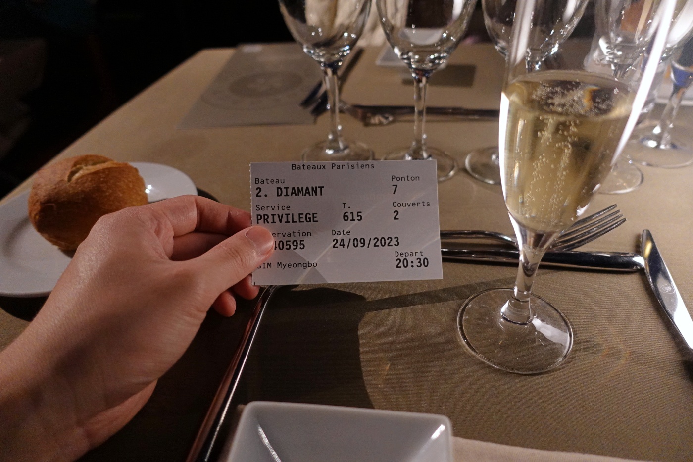 황홀한 파리 야경을 구경하고 사진을 찍느라 입으로 먹는지 코로 먹는 지 몰랐고 무척이나 맛있게 잘 먹었다. 이날 시차적응 문제로 잠을 제대로 자지 못하고 맞이한 밤이라 몸은 많이 피곤했다. 하지만 각자 어느 기념일에 맞춰서 온 들뜬 사람들 사이에 둘러싸여 피곤한줄도 모르고 즐거운 분위기에 디너 크루즈를 이용했다. 사진사가 식사 전에 기념 사진을 찍어주고 디저트 먹는 때에 맞추어 프린트해서 보여주는데, 배경보다는 인물 위주의 사진이라 구매하지는 않았으나 유쾌한 경험이었다.