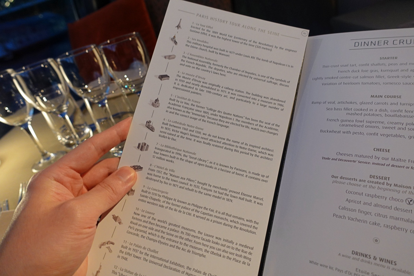 메뉴판 한편에 바토파리지앵 크루즈를 타며 감상할 수 있는 아이코닉한 랜드마크를 소개하는 팜플렛이 껴 있다. 출발 전 하나씩 살펴보았다.