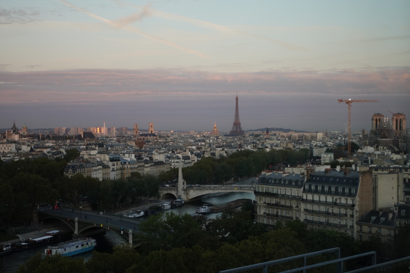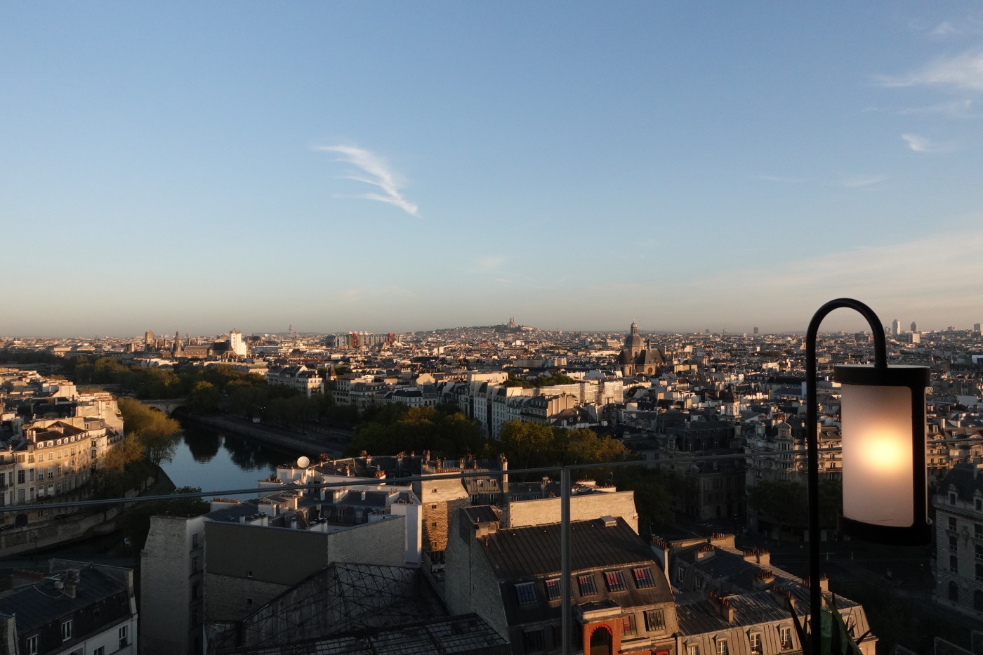 물론 낮에도 파리 도심 전망이 아름답다. 판테온과 에펠탑, 우측으로 공사중인 노트르담대성당이 얼핏 보인다.