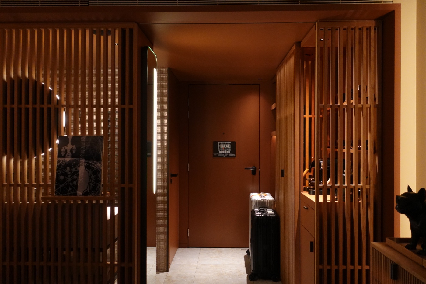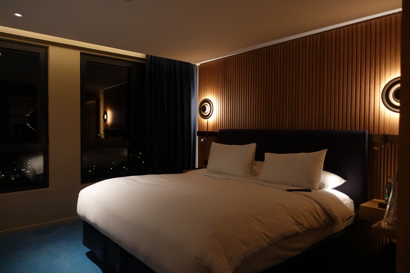 소파리 호텔 아이코닉룸 객실 첫인상이다. 체크인을 밤늦게 해서 어둡다. 이전 로비 사진은 추후에 찍은 것을 올린 것이다.