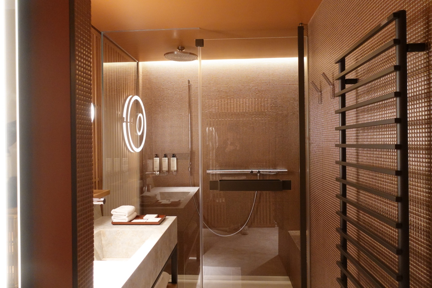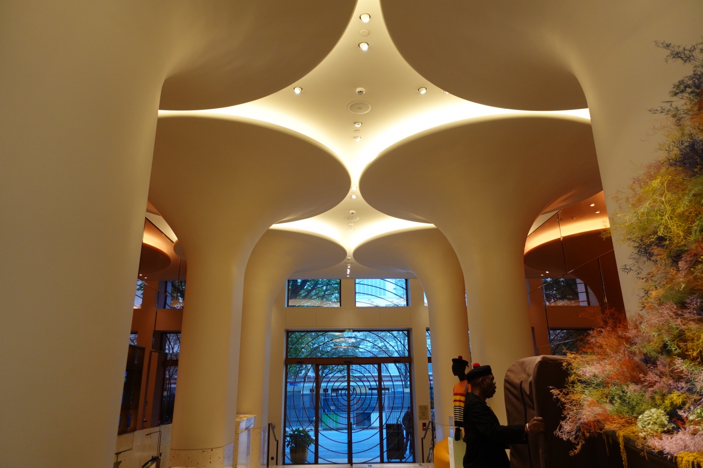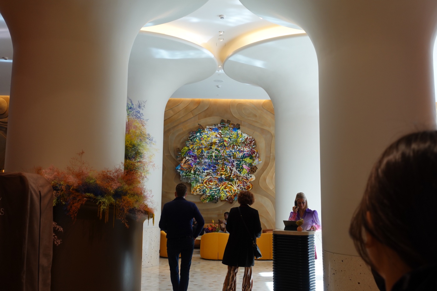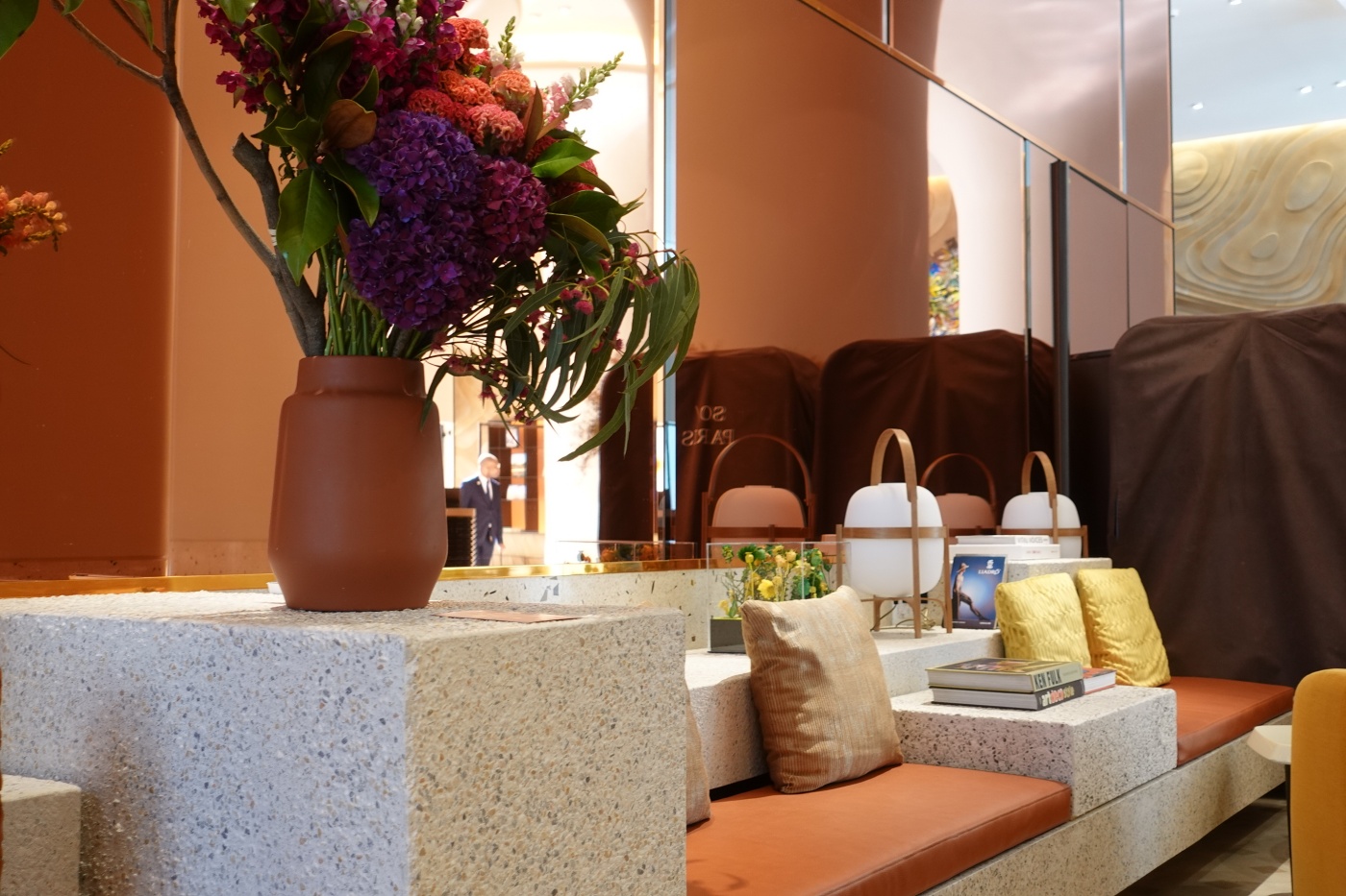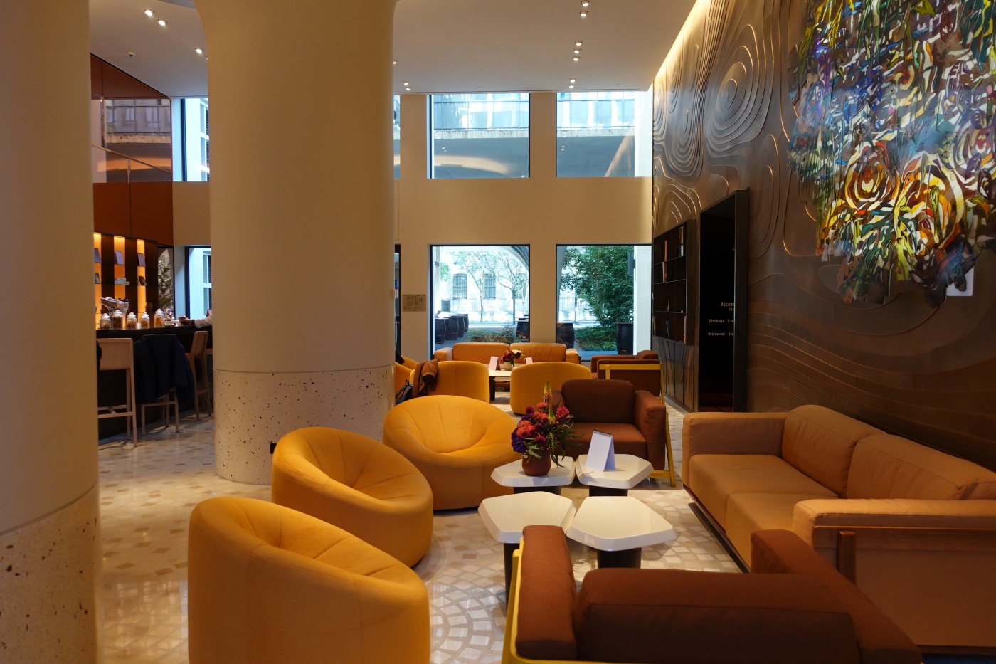 넓지 않은 공간에 큰 기둥들이 있어서 더욱 좁았다. 호텔 인테리어 디자인을 맡은 RDAI (에르메스 매장 인테리어 팀으로 유명하다고) 에서 일부러 기둥을 박았을 리는 없고, 구조상 불가피한 기둥을 디자인 요소로 재해석한 듯하다. 애초에 호텔 건물로 지어진 것이 아니고 파리 도심재개발의 일환으로 데이비드 치퍼필드의 손에 리모델링된 건축물에 호텔이 입점한 형태이기 때문에 로비 공간을 마음껏 넓게 계획하지 못했을 수 있다.