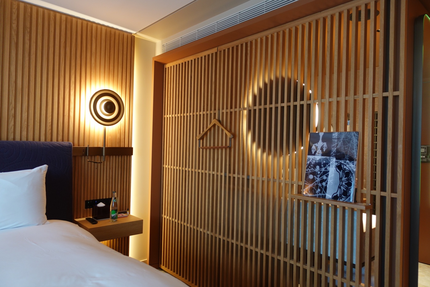 좁은 객실이지만 동선계획과 수납 디자인이 잘되어 있었다. 옷을 걸 수 있는 옷걸이가 넉넉했고 (약 6~8개의 외투를 걸 수 있었다.) 하부 서랍공간 2개, 상부 개방형 수납공간 3개가 있었다. 캐리어를 막 펼쳐서 이용할 수 있는 공간은 아니었지만 수납 공간 계획이 잘 되어 있어서 이용에 불편함이 없었다.