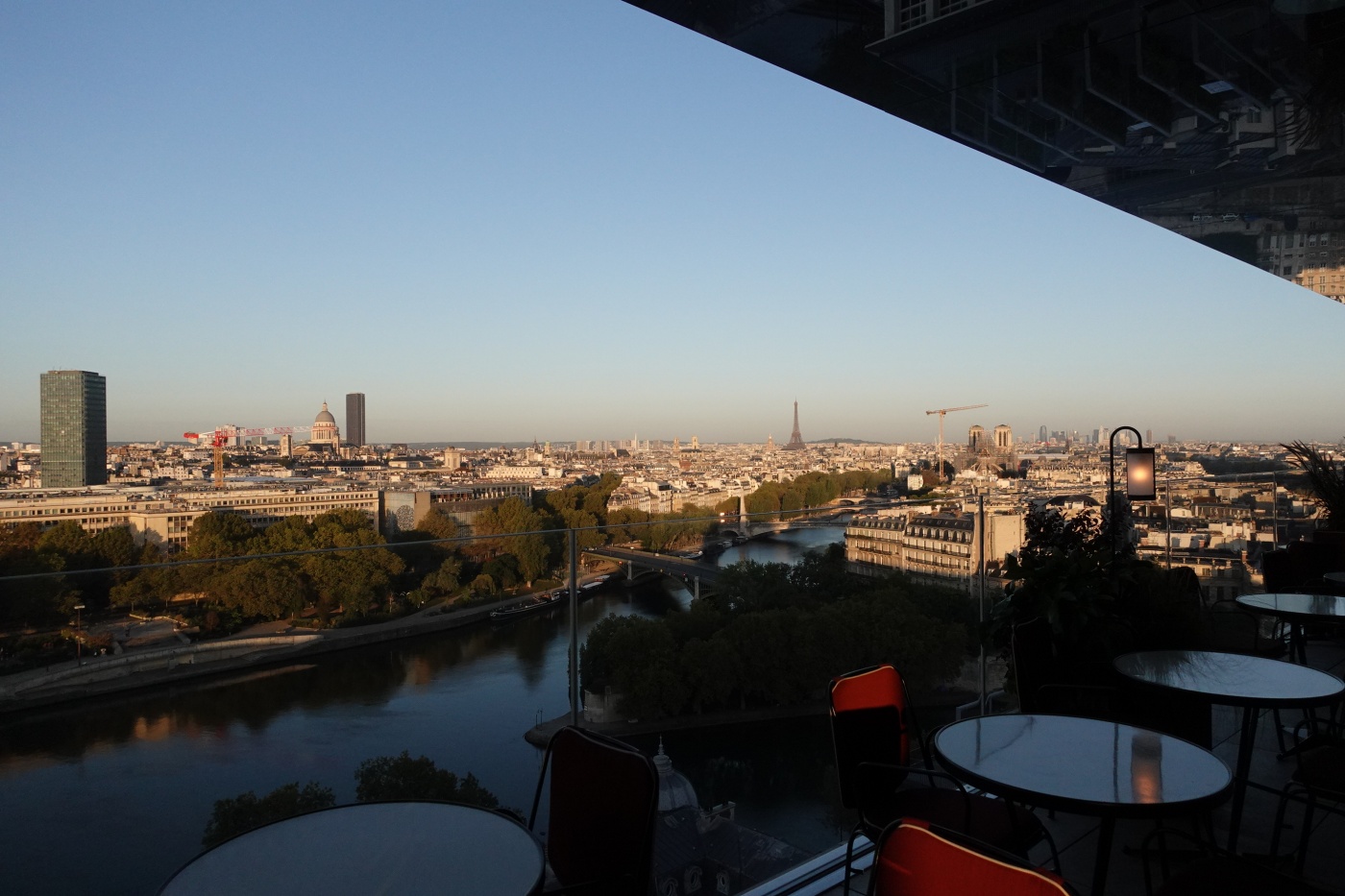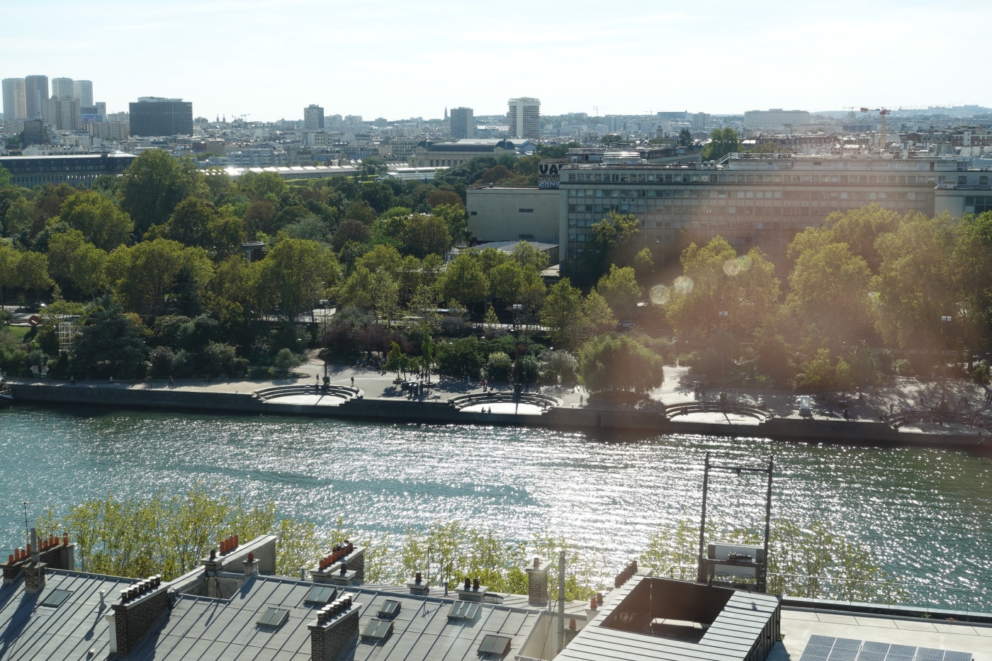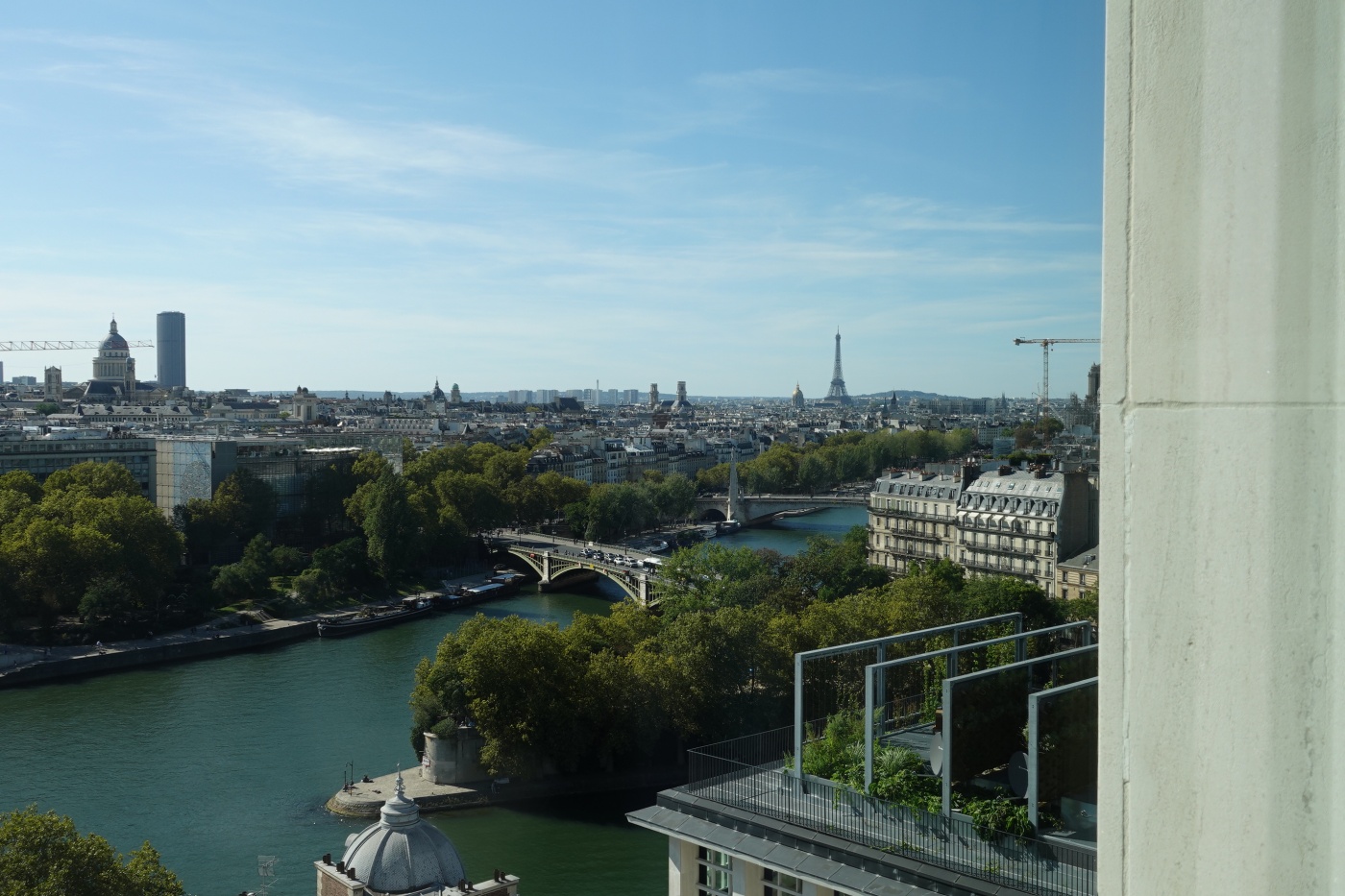 식사를 마치고 테라스에 나가 풍경을 감상했다. 서쪽 멀리 프랑스국립도서관이 보인다. 도미니크 페로의 작품이다.