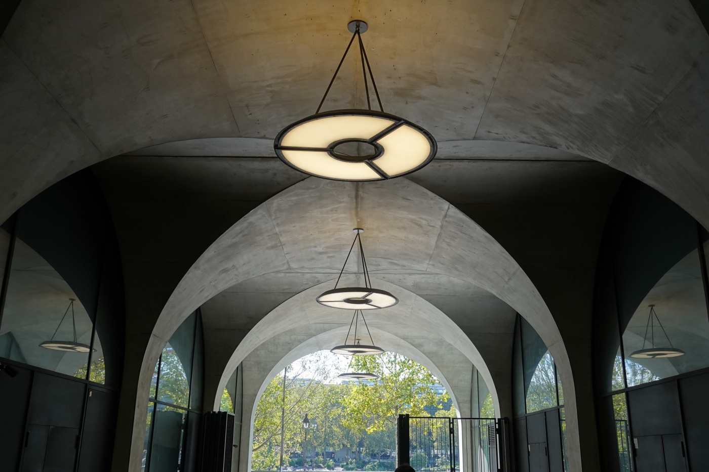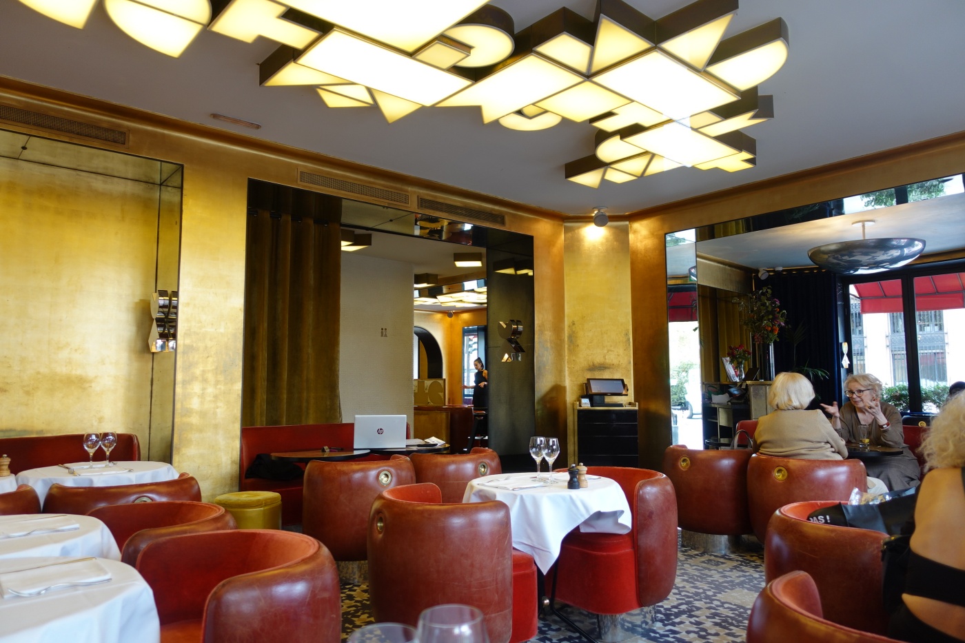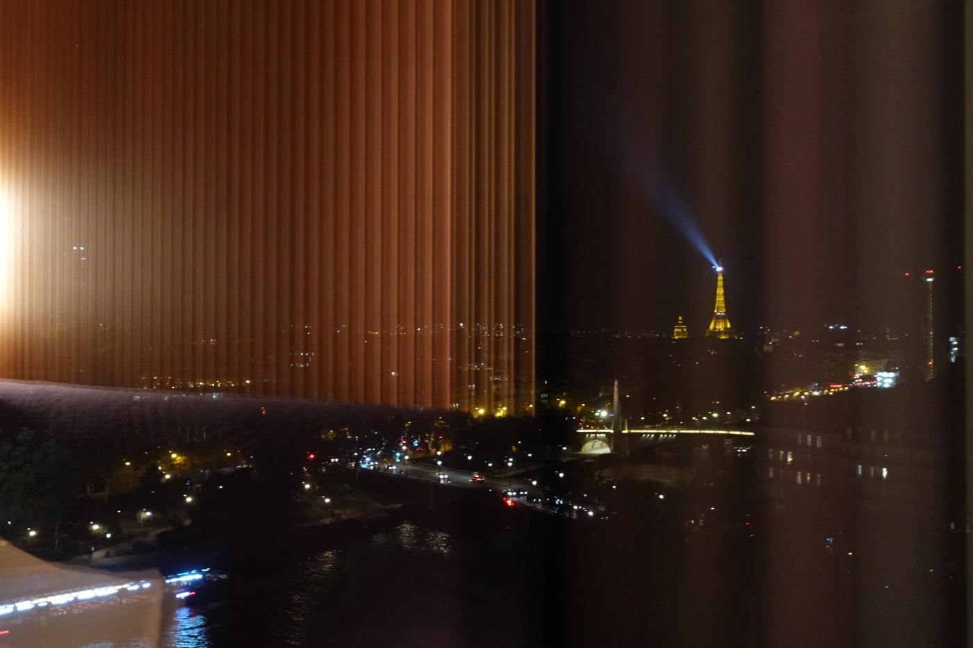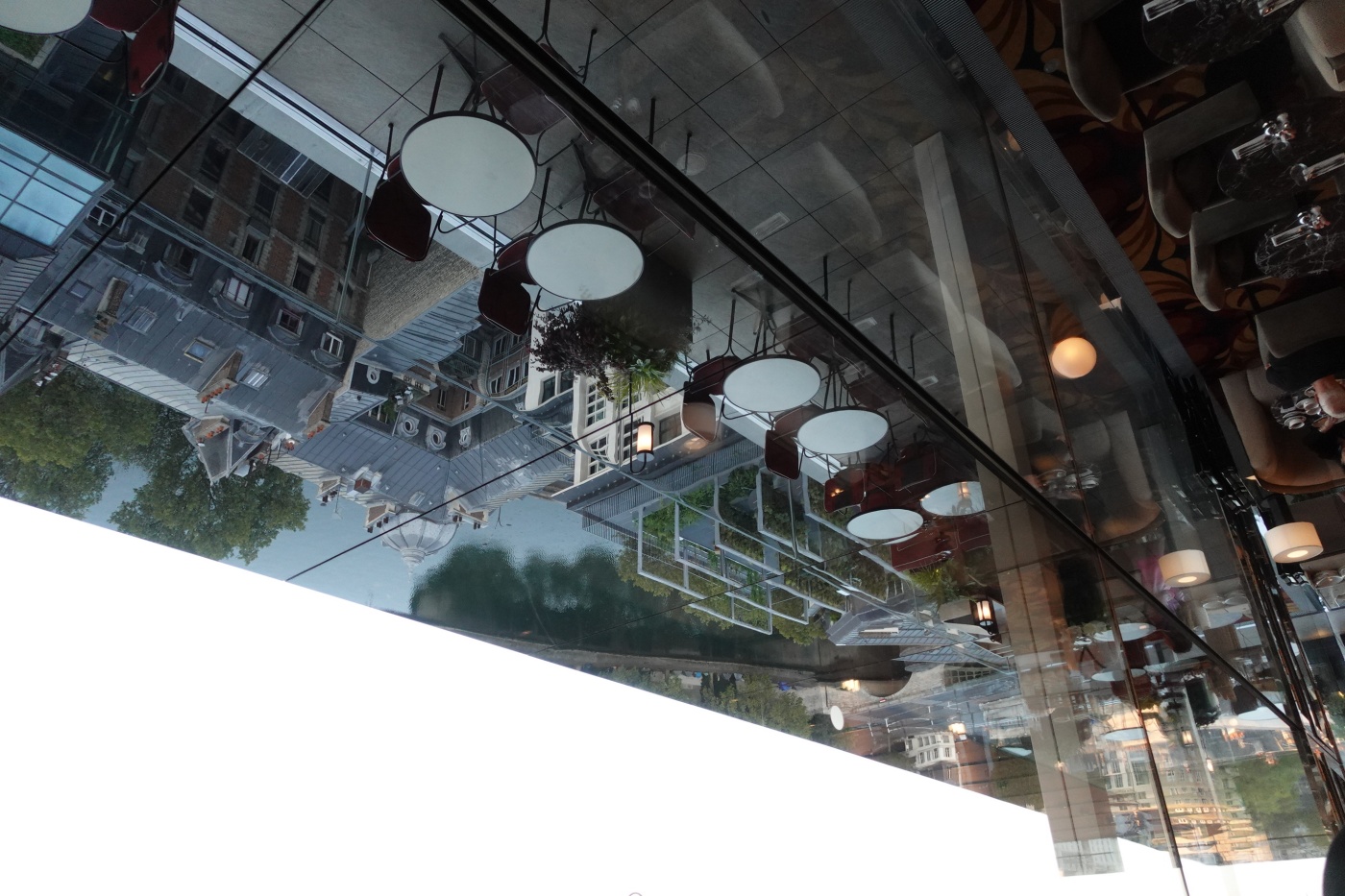 조식 레스토랑 테라스 측면 천장은 올라프 엘리아슨의 작품으로 거울로 마감되었다. 그래서 실내에서 거울을 보면 센느강이 반사되어 비쳐 보인다. 매우 아름답다.