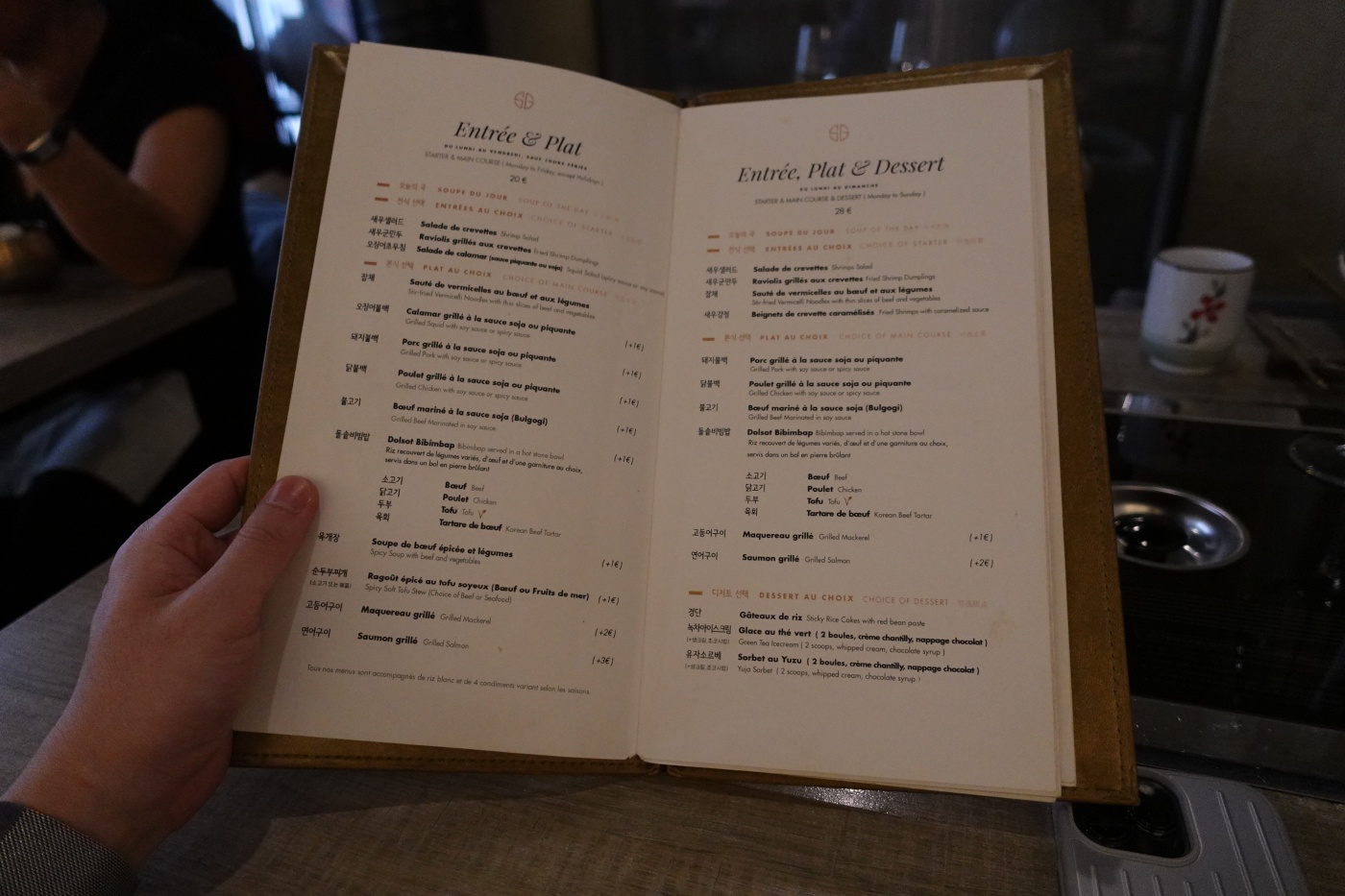 며칠째 한식을 못 먹었더니 한식 생각이 많이 났던 아내.. 마레에 있는 한식당을 찾아 들어갔는데 꽤나 유명한가 보다. 미슐렝 가이드 5회 선정에 빛나는 곳. 점심 식사로 불고기와 비빔밥을 맛있게 먹었다. 한국어로 친절히 안내해 주어서 고향에 온 느낌이 났다.