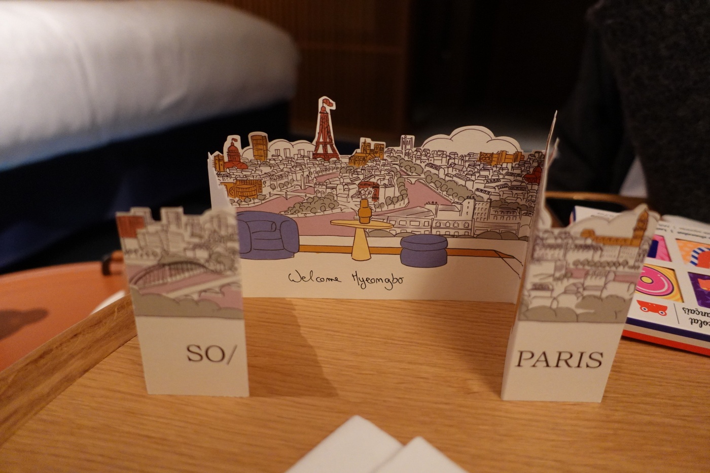 소파리호텔에서 조망할 수 있는 파리 도심의 랜드마크를 귀여운 일러스트로 만든 카드를 제공햇다. 기념품으로 챙겨 가면 좋을 것 같다.