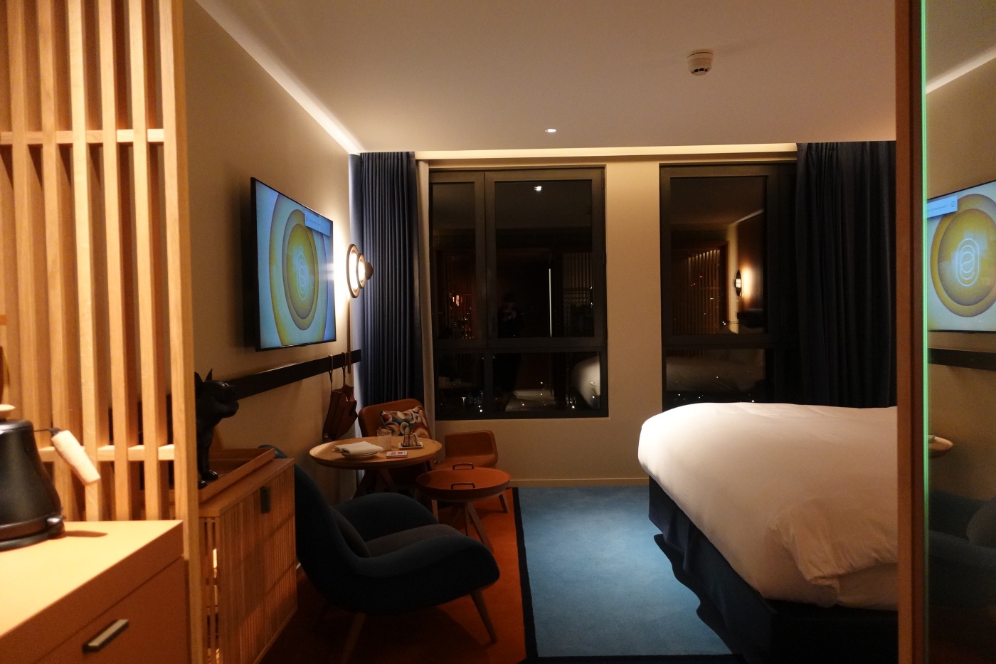 조명계획은 마스터, 다이닝, 젠 이렇게 3가지 옵션이 있는데 조도가 낮은 간접조명으로만 은은하게 방을 밝히는 젠 세팅이 있어서 잠들기 직전과 일어난 직후에 유용했다. 객실청소와 별도로 매일 저녁 시간에 선물을 하나씩 객실에 놓아 주어서 접객 서비스가 세심하게 느껴졌다.