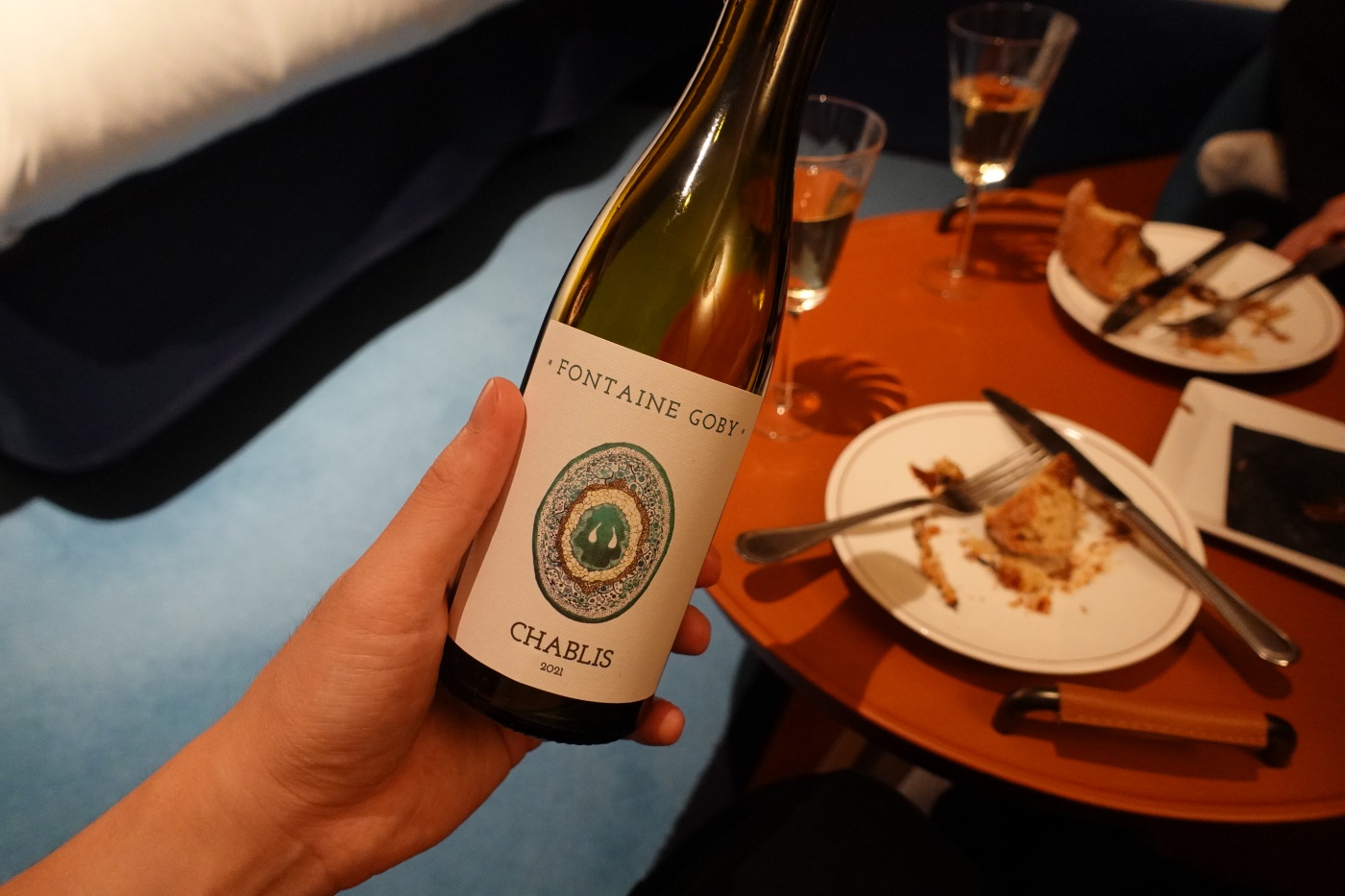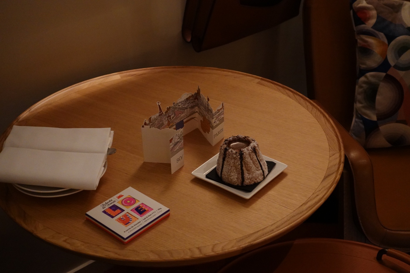 소파리 호텔에서 제공한 웰컴 키트. 초콜릿과 디저트 월컴 카드가 있었다. 월컴 드링크가 없어서 냉장고에 있는 스파클링 와인을 뜯어 마셨다.