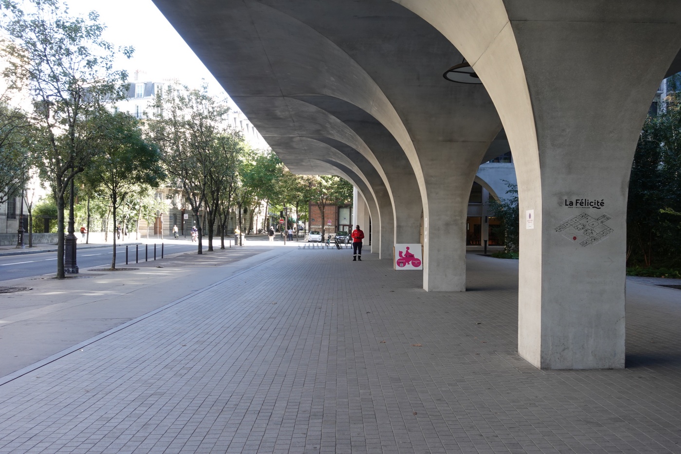 소파리호텔에 들어가기 앞서 호텔이 자리한 라펠리시테에 대해 간단히 소개한다. 라펠리시테는 2015년 리인벤트파리란 이름으로 계획되어 2022년 준공된 도심 재개발 프로젝트다. 기존 16층 규모의 행정건물로 쓰이다 방치된 부지를 개재발하는 공모에 영국 건축가 데이비드 치퍼필드가 당선되어 설계를 맡았고, 완공 후 주거, 호텔, 오피스, 상업 시설이 입주했는데 그 중 하나가 소파리호텔이었다. 정사각형 부지 4면이 꽉 막힌 폐쇠적이었던 공간을 최대한 개방하여 접근성을 높인 것이 포인트다. 다만 방문 당시 호텔 프로그램 외에는 그다지 활기가 느껴지지 않아 애초 계획대로 운영되고 있는지 의문이다.