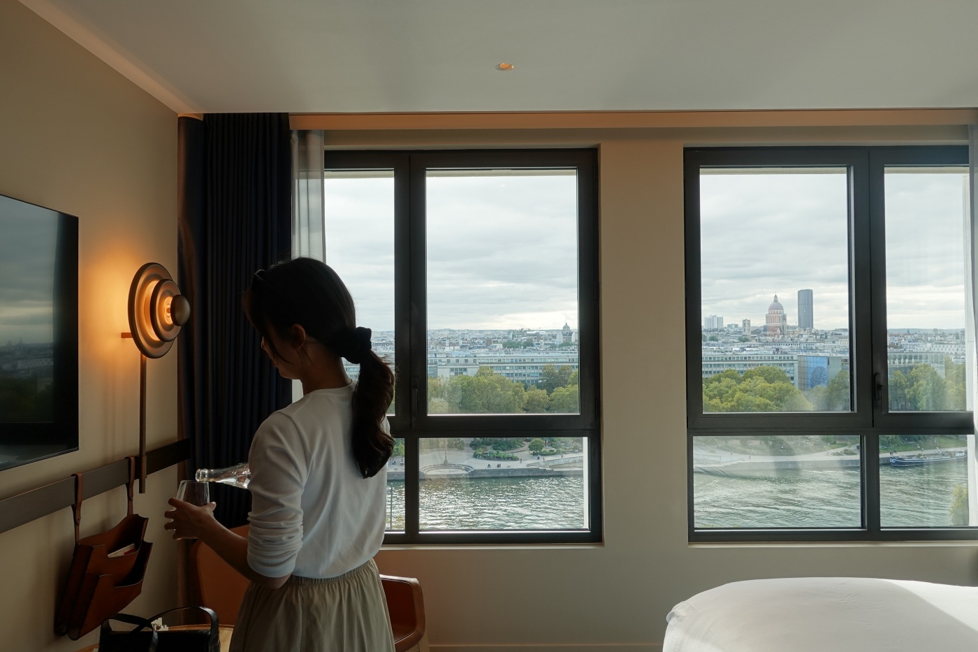 아이코닉 룸 창가에서 우측 끝에 파리 에펠탑이 보인다. 이것만으로도 비싼 객실료가 이해가 된다.