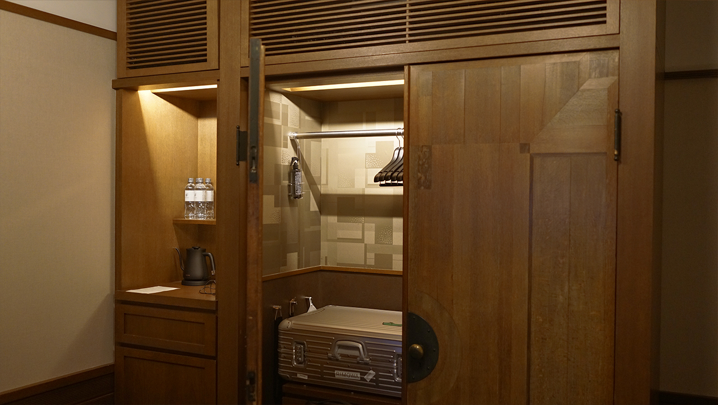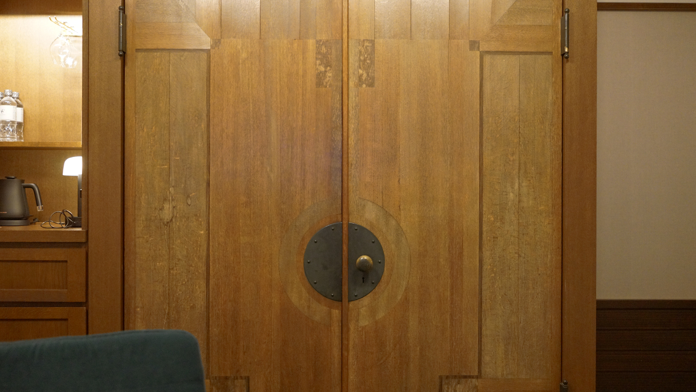 객실의 옷장에 설치된 문 또한, 과거에 쓰이던 것 그대로다. 나뭇결 모양을 살려 이리저리 조합해 문 짝을 구성한 디테일에서 무엇하나 아름답게 만들고자 했던 당시의 장인적인 정서가 느껴진다.