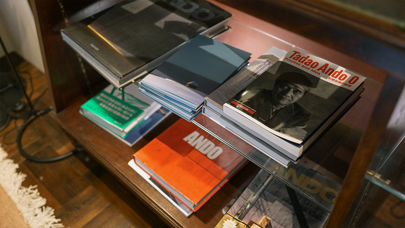 기념품 진열대 아래 오픈장에는 건축가 안도 다다오의 작품집이 진열되었다.