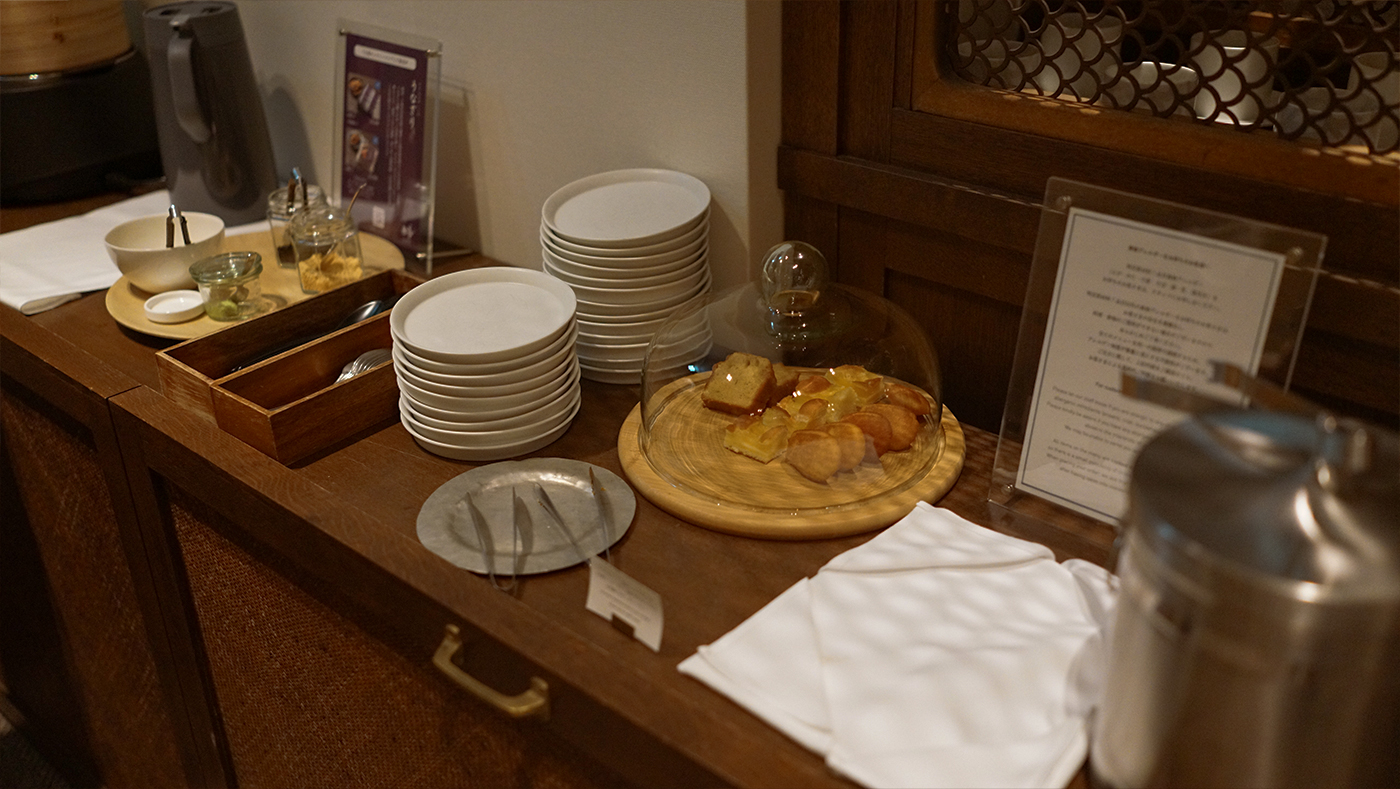 무료 스낵코너는 매일 메뉴가 달랐다. 필자가 체크인한 당일에는 빵과 주먹밥이 있었다.