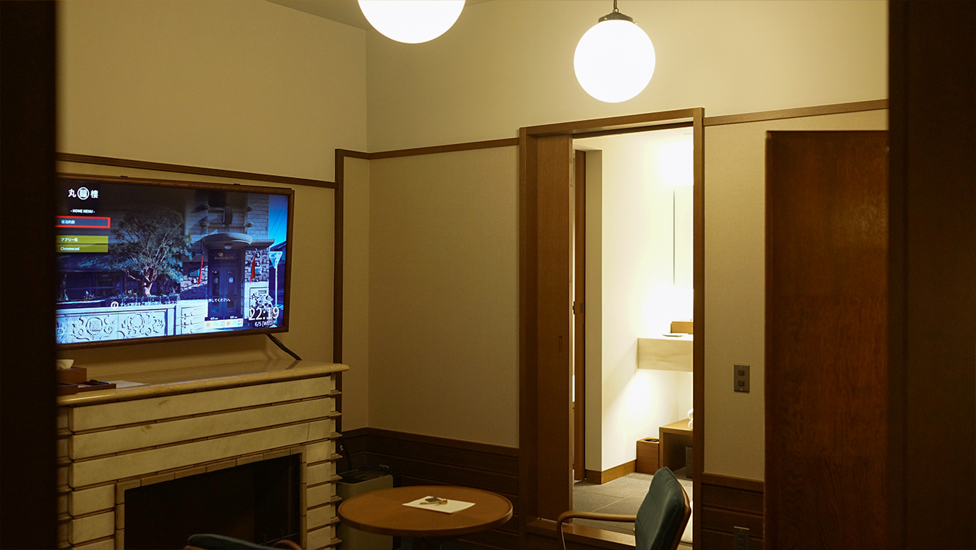 벽난로는 과거 닌텐도 사옥 거주동에 쓰이던 것을 그대로 남겨둔 것이라 한다. 당연히 안전 상의 이유로 사용은 할 수 없다. 하지만 벽난로가 존재하는 분위기 자체(옹색해 보이지만, 나무 모형도 놔 두었다)로도 객실이 심적으로 더 따뜻하게 느껴지는 것이다.
