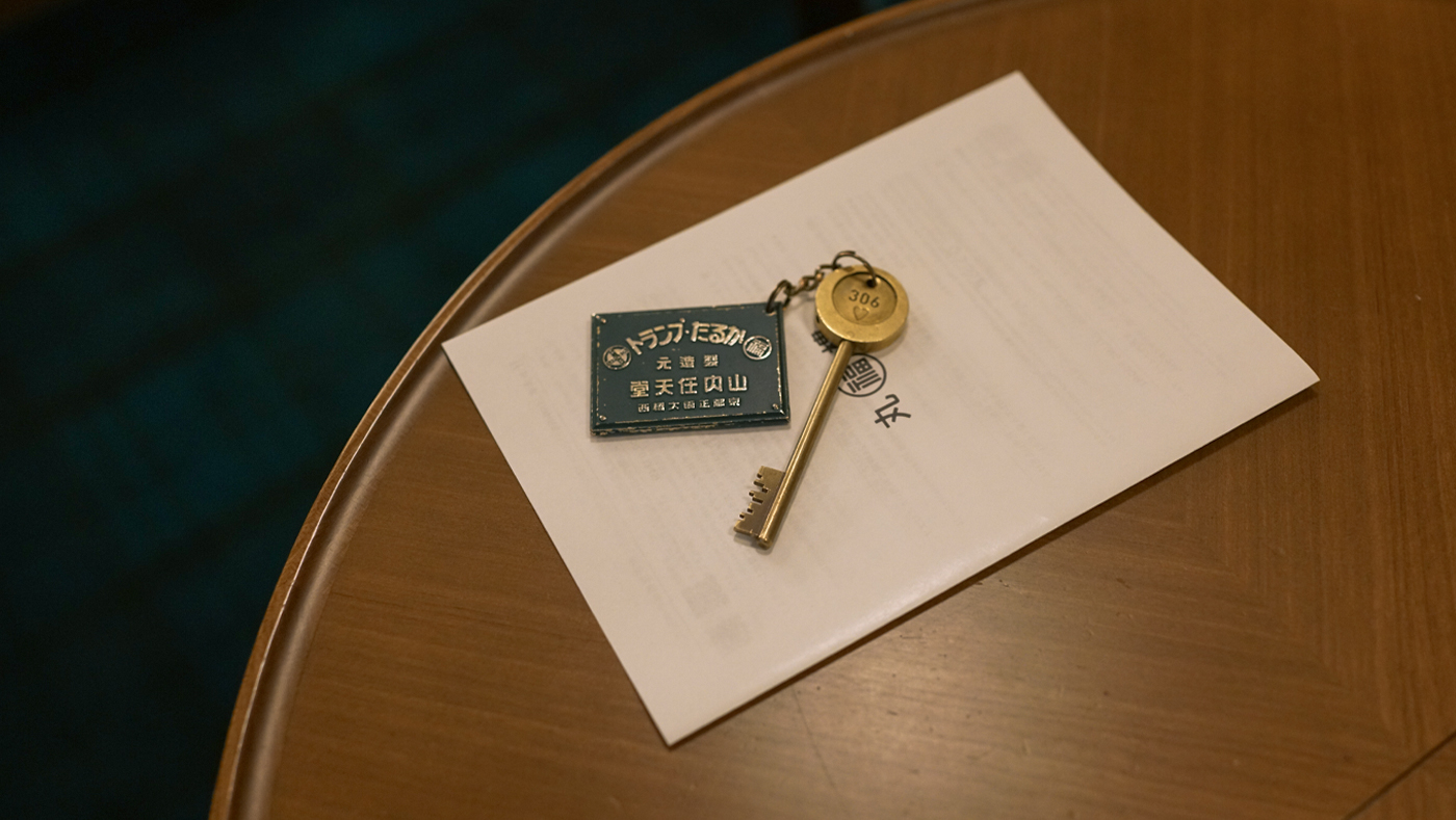 해당 객실 전용 열쇠다. 열쇠에 객실 번호와 하트동의 상징 마크가 찍혀 있다. 열쇠고리는 닌텐도 사옥으로 쓰이던 당시 건물 외벽에 붙어 있는 간판을 따온 것이다. 이를 새로 제작하기가 꽤나 까다로운지 퇴실 시에는 로비 카운터 직원에게 되도록 맡겨 달라는 부탁을 받았다.