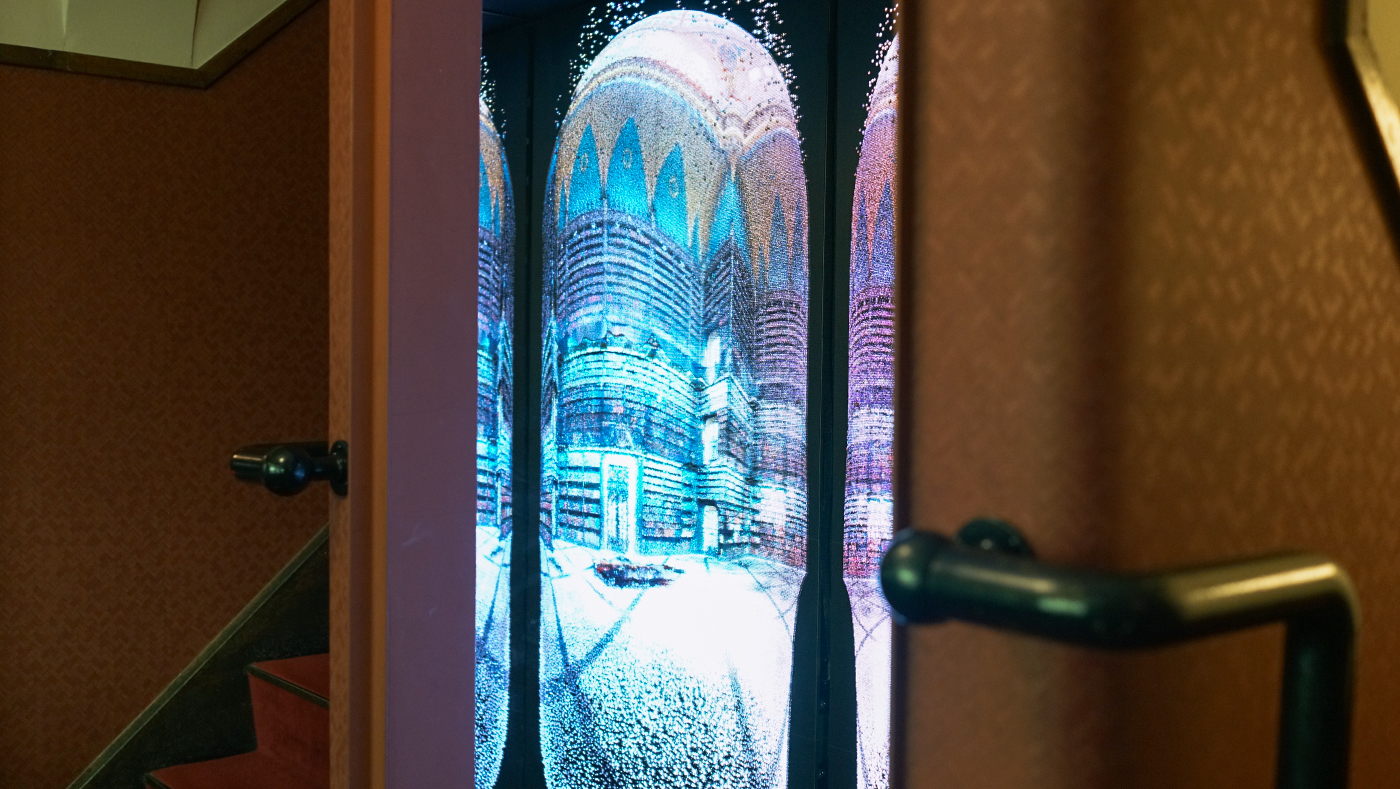 라이브러리 복도에 미디어 전시 작품이 있었는데, 잘 이해하진 못했고 신기해서 찍어 두었다. 어쨌든 이런 작품이 있다.