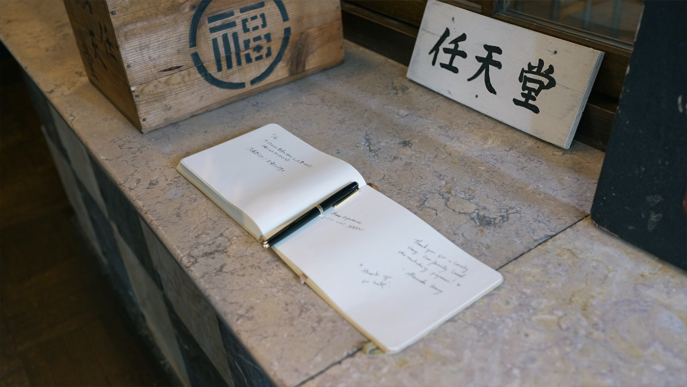 호텔을 오가며 방명록을 쓸 수 있도록 게스트북이 놓여 있다. 나도 마지막날 체크아웃하며 한 페이지를 작성하였다. 대충 즐겁고 스태프의 노고에 감사하다는 내용이었다.