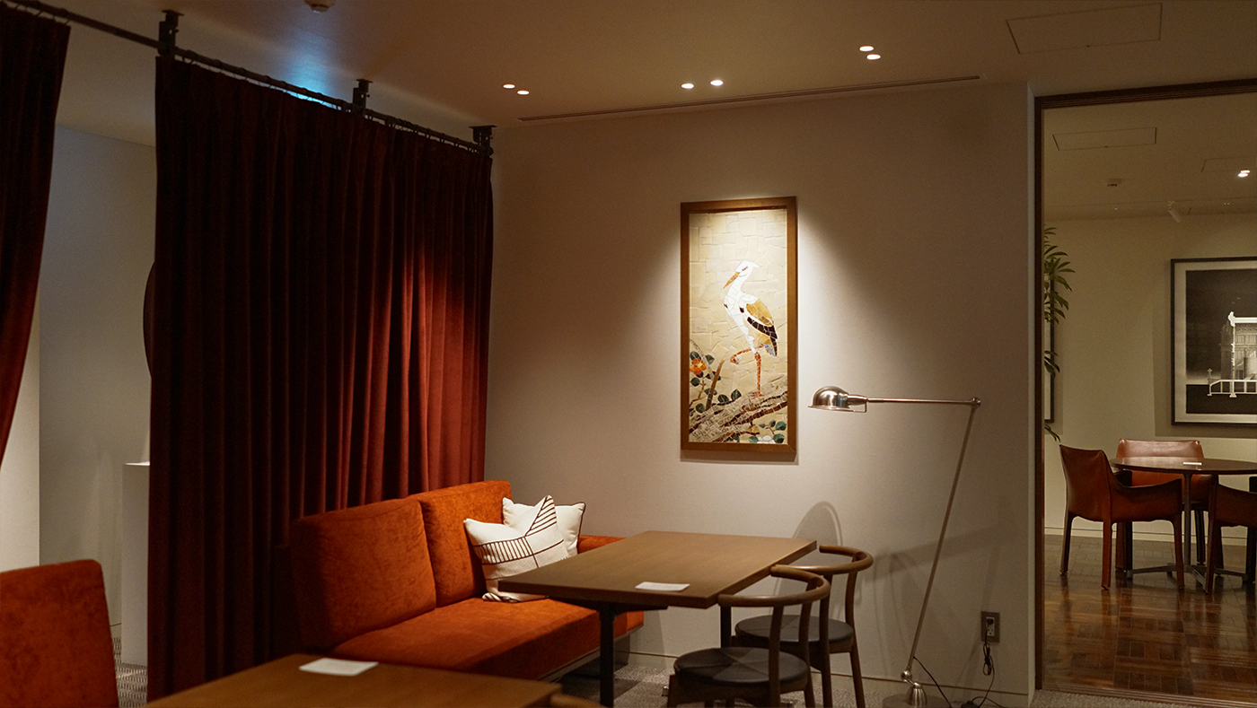 그리고 반대편 벽에는 건물이 지어졌던 당시의 보존자료를 바탕으로 리모델링에 참고한 디자인 설명 액자가 걸려 있다. 마루후쿠로 호텔의 디자인을 이해하는데 직관적인 정보를 전달한다.