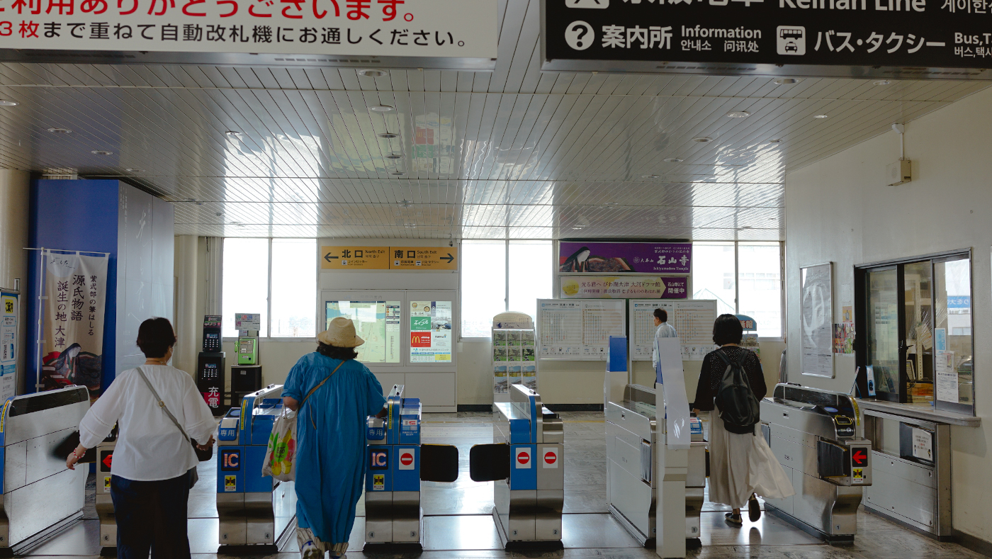 이시야마 역으로 가는 비와코 라인을 이용할 수 있는 2 & 3번 트랙으로 가기 위해 JR 서측 게이트로 진입한다.