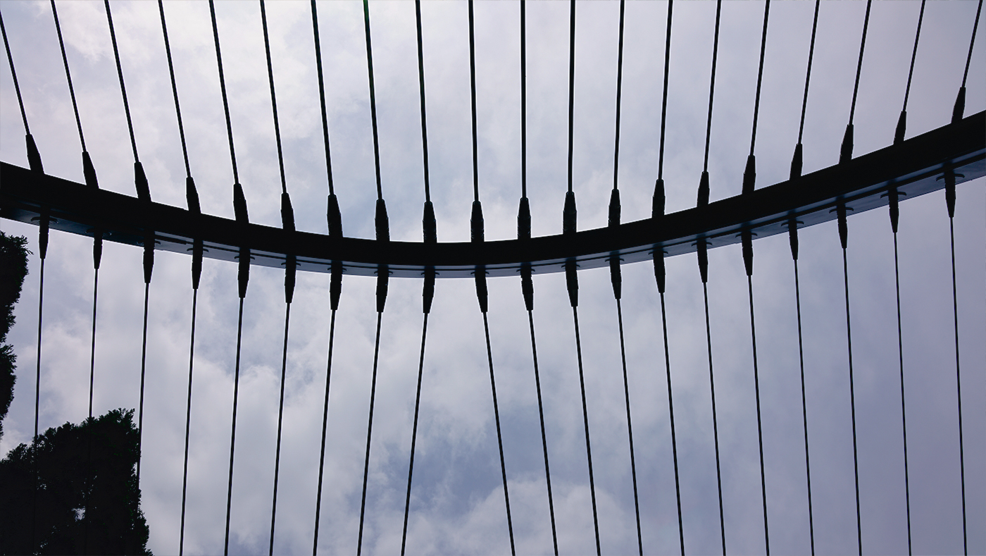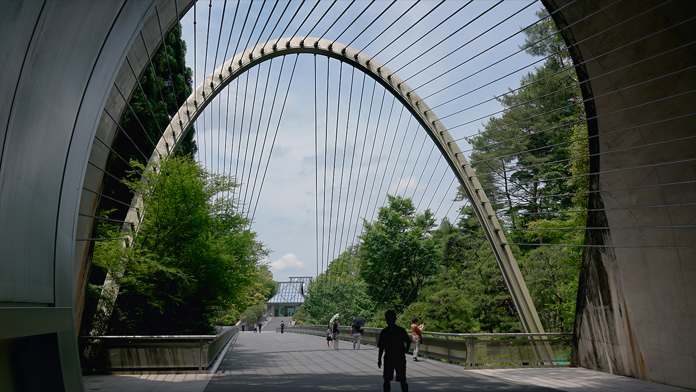 되도록 자연에 적게 개입하고자 최소화된 사장교 케이블이, 오히려 미호 뮤지엄의 독특한 정체성이 된다.