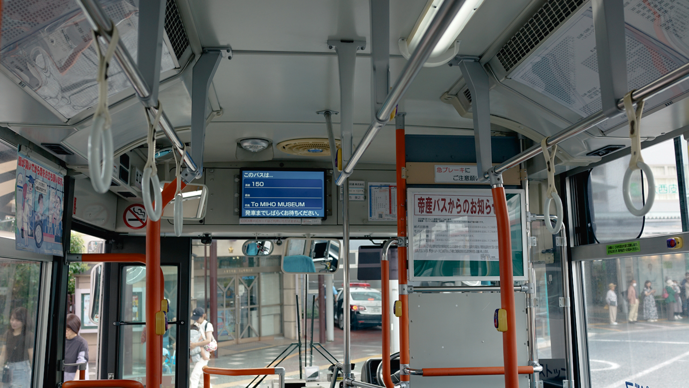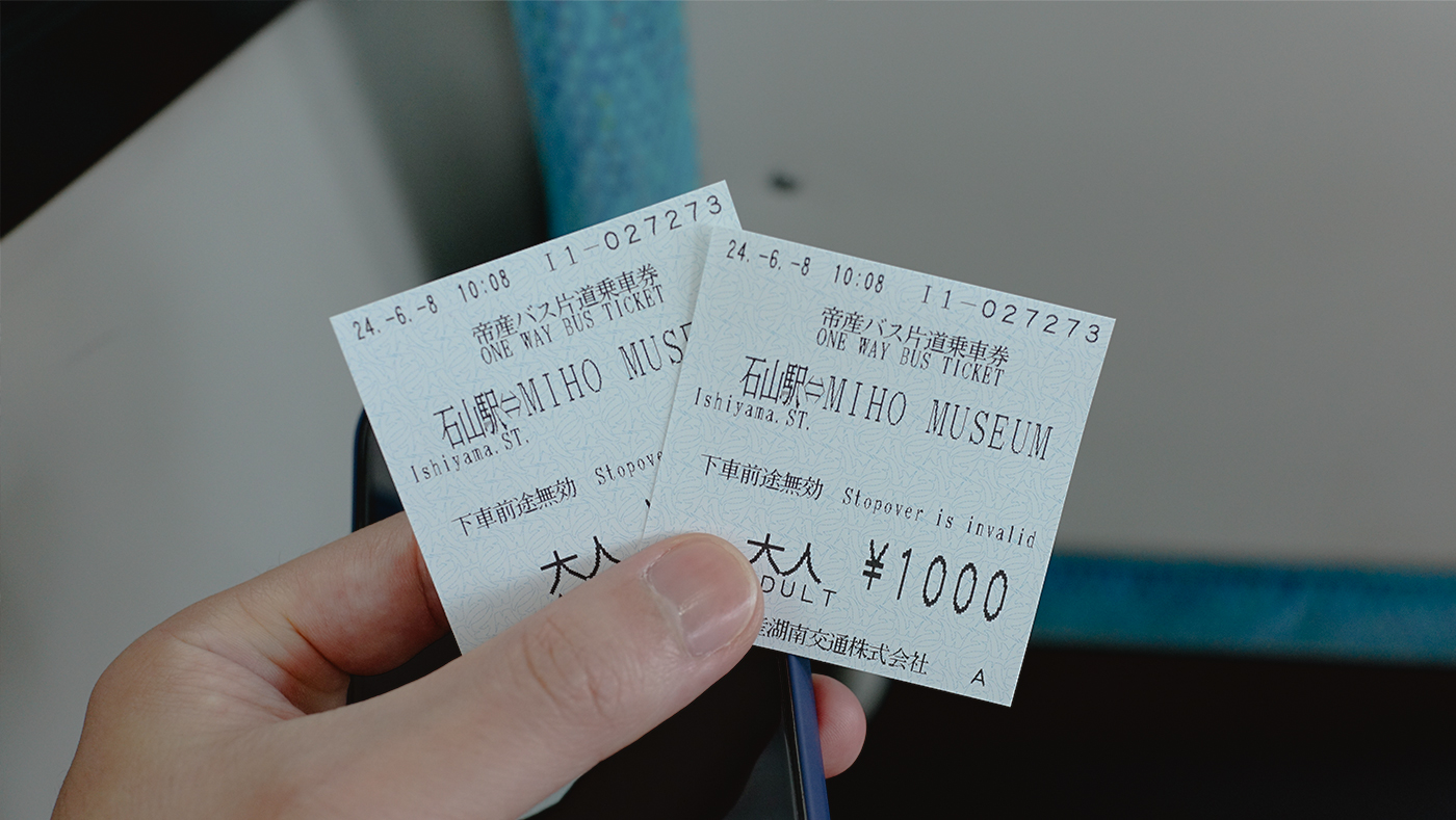 시이야마역에서 미호 뮤지엄으로 가는 버스 이용 요금은 성인 1명당 편도 1,000엔이다. 소요 시간은 약 1시간.