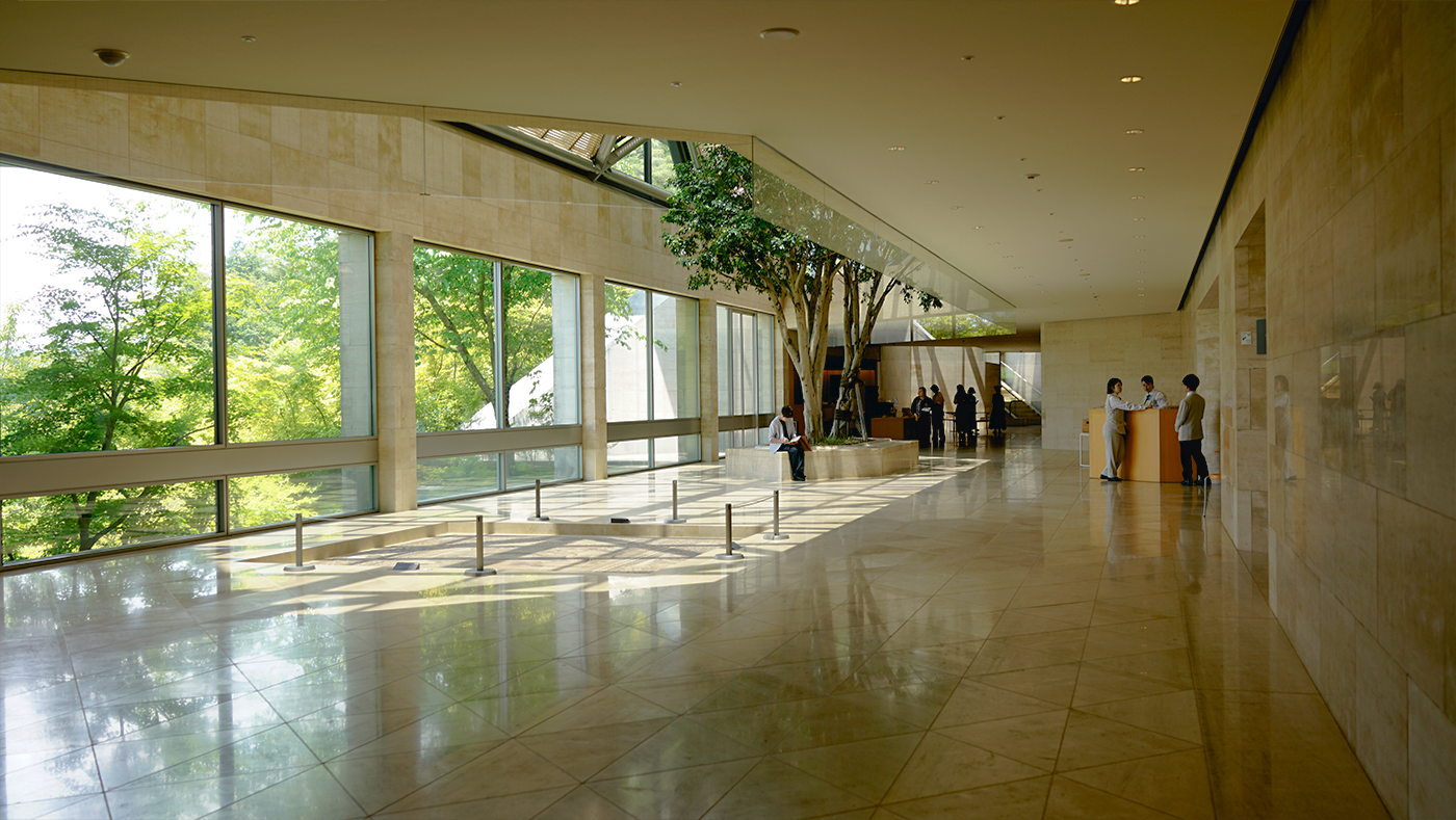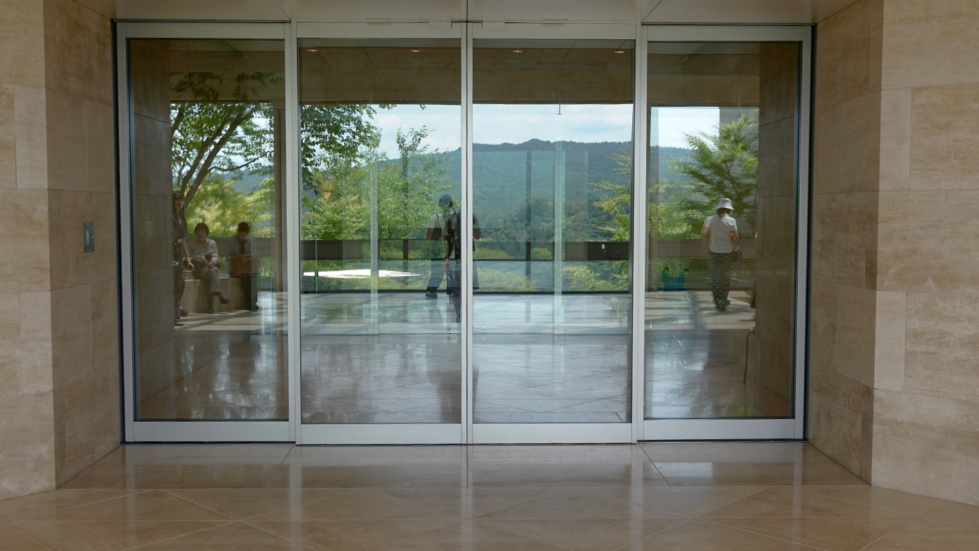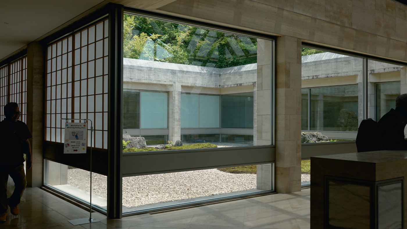 미호 뮤지엄 본관의 입구를 보면, 철골 유리 마감으로 직선적인 일본의 전통 처마 지붕을 형상화 한 것을 볼 수 있다.
