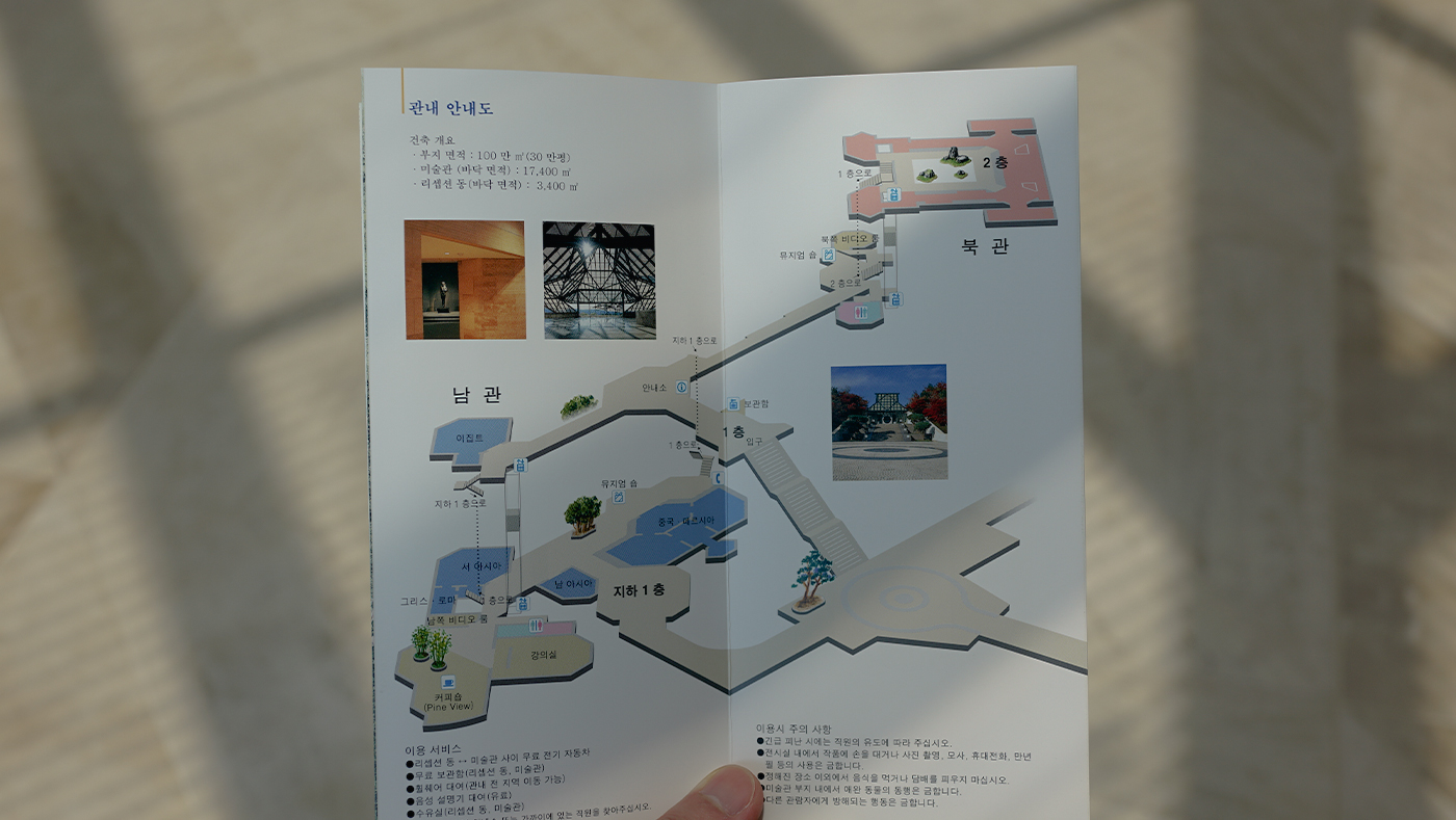 전시 관람을 하기 앞서 동선 계획을 세운다. 북관의 2층 기획전시를 먼저 둘러 본 뒤 남관의 1층과 지하1층 상설전시를 둘러보기로 한다.
