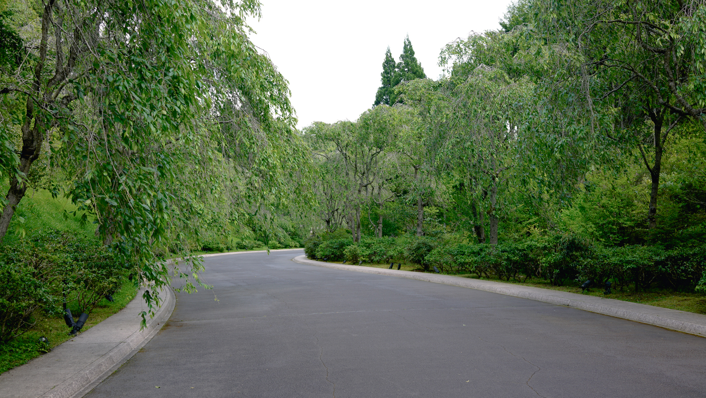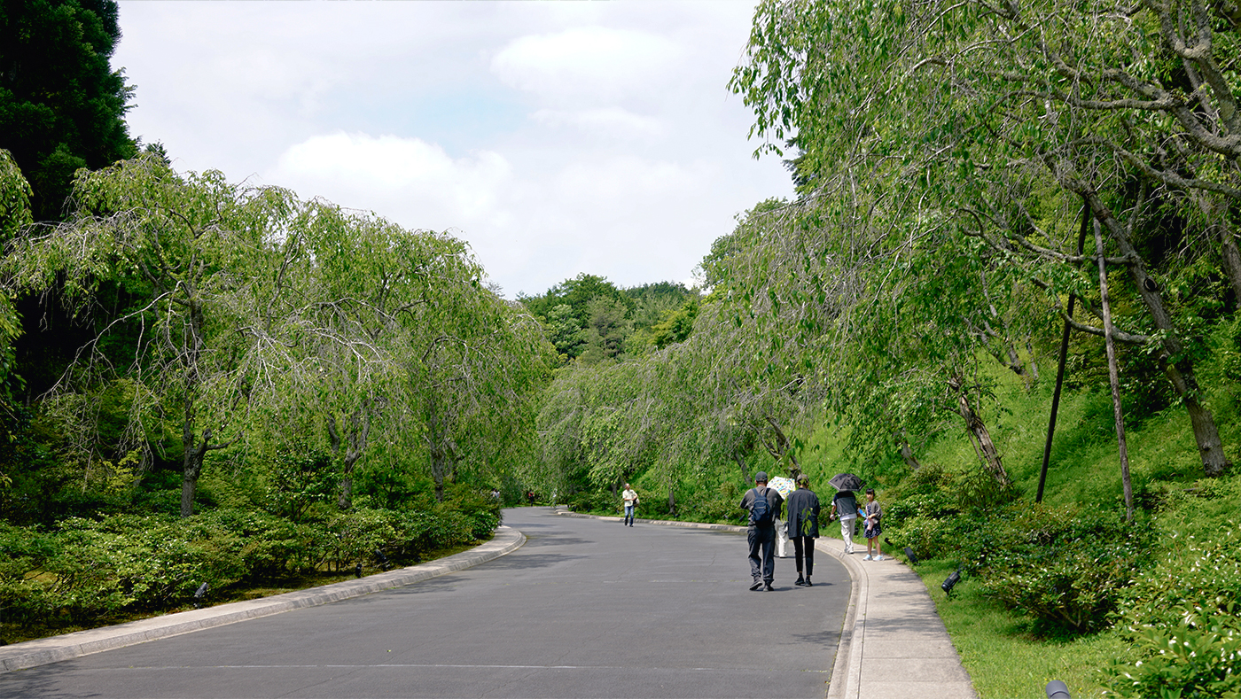 6월 초, 산들바람이 부는 걷기 좋은 날씨였다. 미호 뮤지엄 진입로는 수양벚나무 길로, 벚꽃이 피는 봄 벚꽃구경 명소로 유명하다. 사진에 보이는 수양벚나무가 분홍빛으로 물든다고 한다.