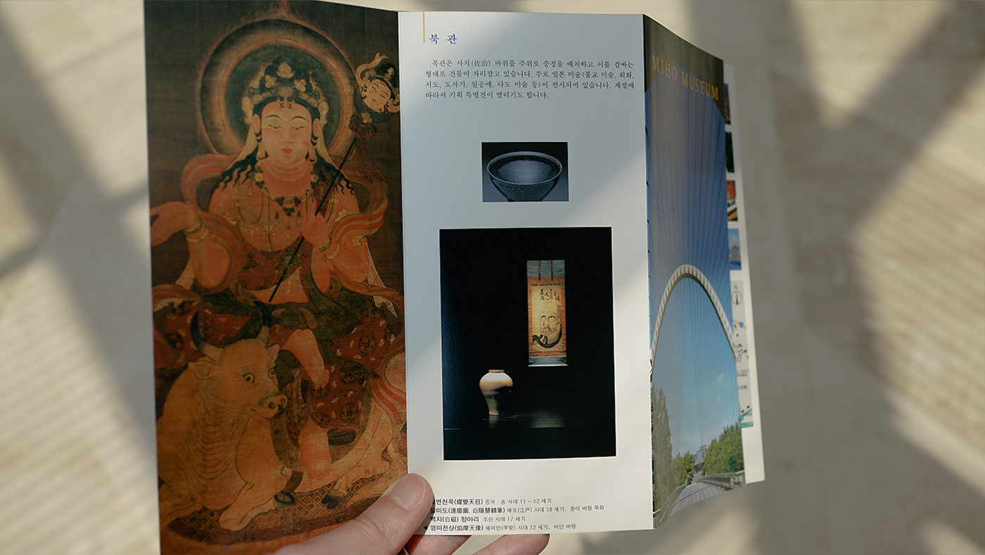 리셉션 파빌리온에서 미호 뮤지엄 한국어 팜플랫을 챙겼다.