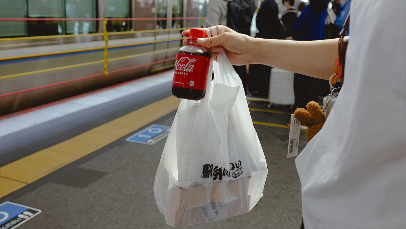 에키벤에서 포장한 도시락과 함께 마실 콜라를 플랫폼 자판기에서 애플페이 이코카 카드로 구매했다.