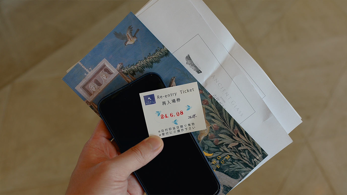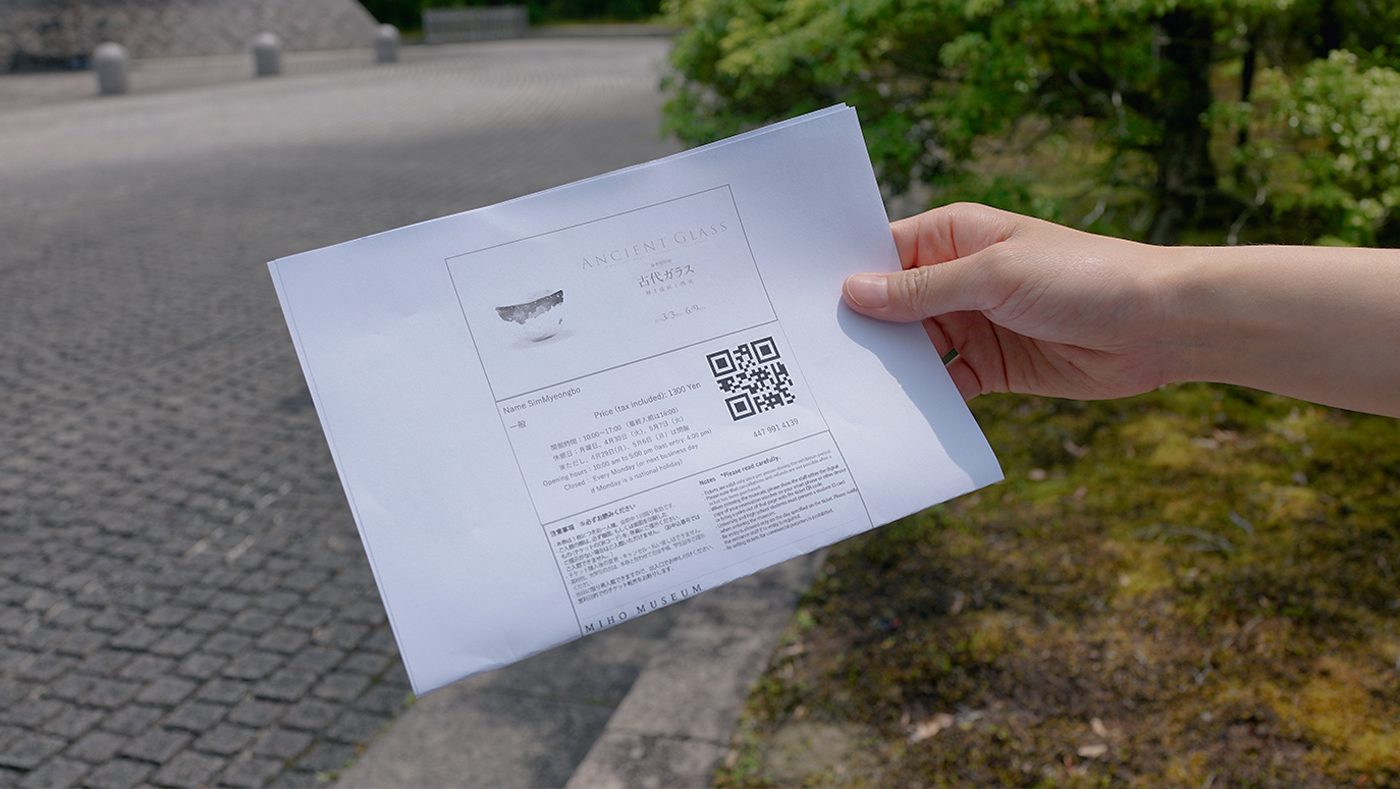 티켓은 한국에서 온라인으로 미리 예약하고 출력했다. 기획전시를 포함하여 모든 전시를 관람할 수 있는 티켓 가격은 1명당 1,300엔이다. 방문했던 6월 8일은 기획 전시로 <고대 유리>가 열렸다. 상설 전시로는 미호 뮤지엄이 개관이래 소장하고 있는 이집트, 서남아시아, 중앙사이사의 고대 유물을 감상할 수 있다.