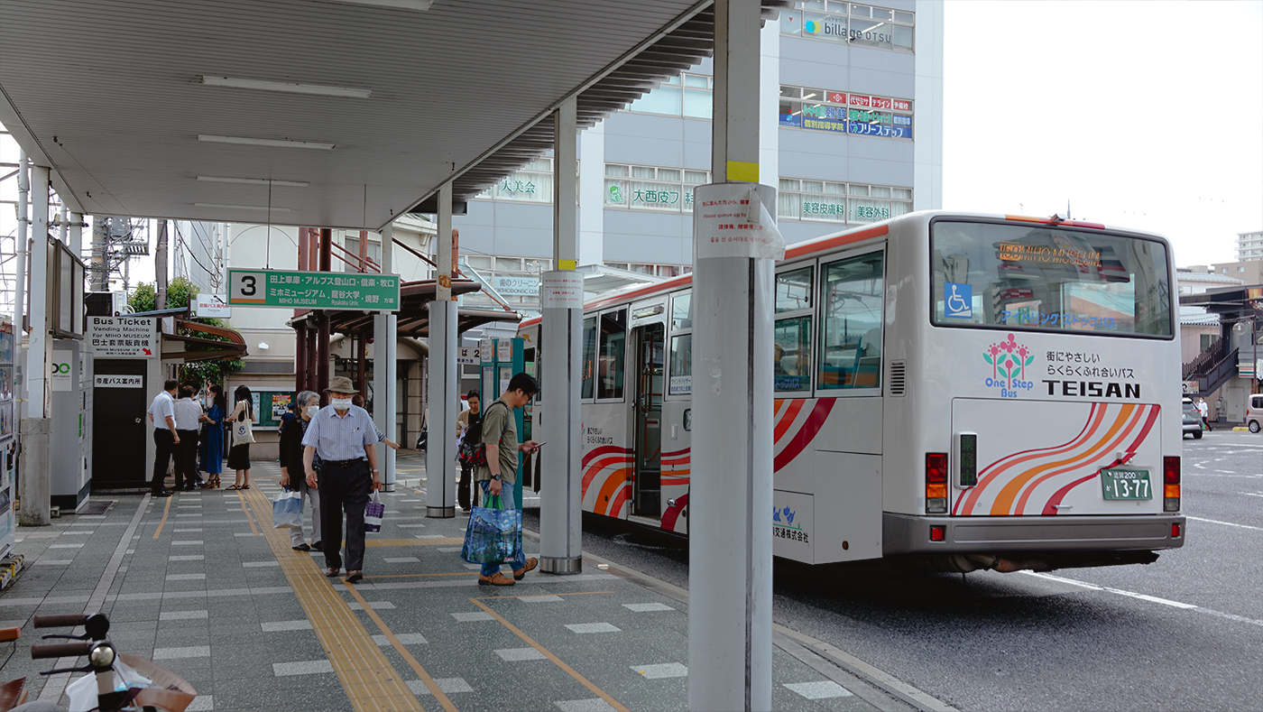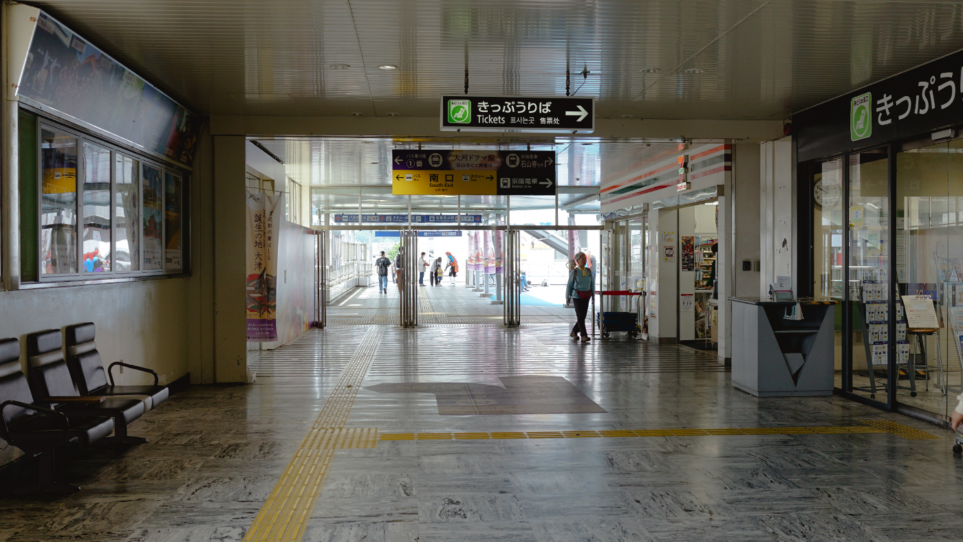미호 뮤지엄 행 버스 탑승구는 이시야마역 개찰구를 나가 우측, 남문으로 나가야 한다.