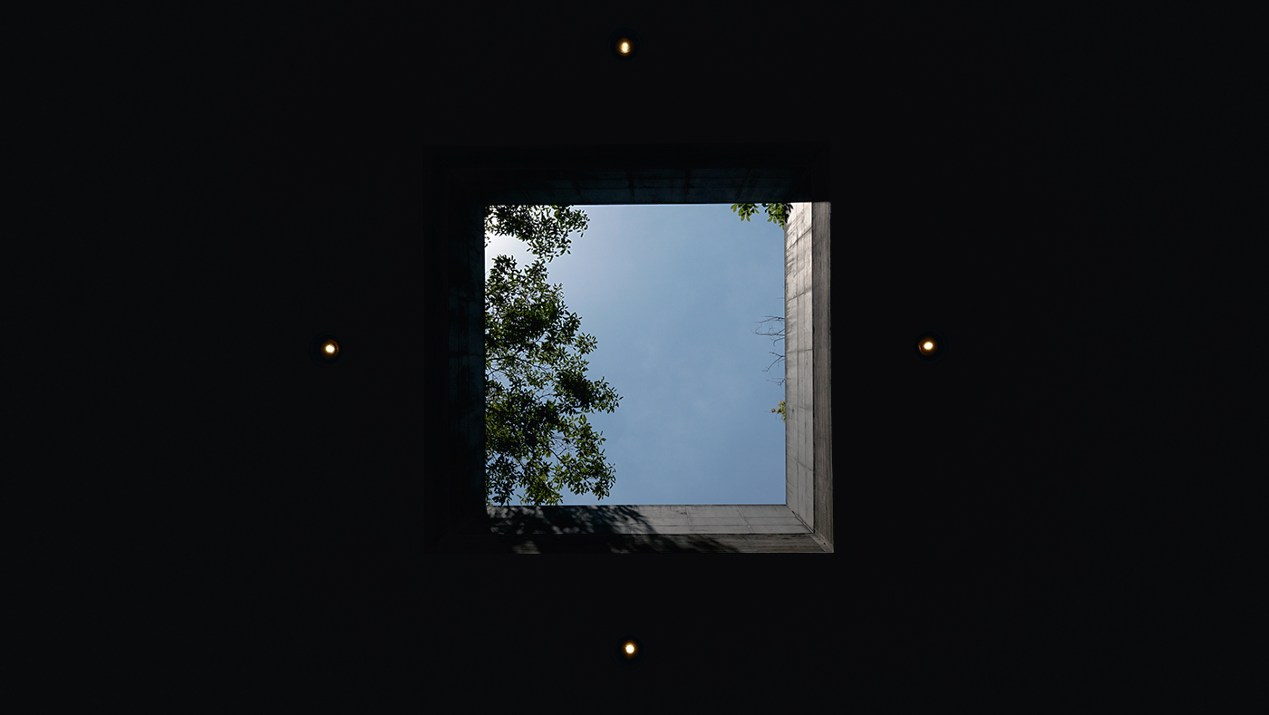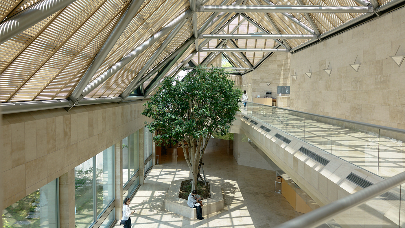 뮤지엄 내부의 천창이 유리로 마감된 것과 달리 이곳은 뚫려 있어 자연광과 바람이 통한다.